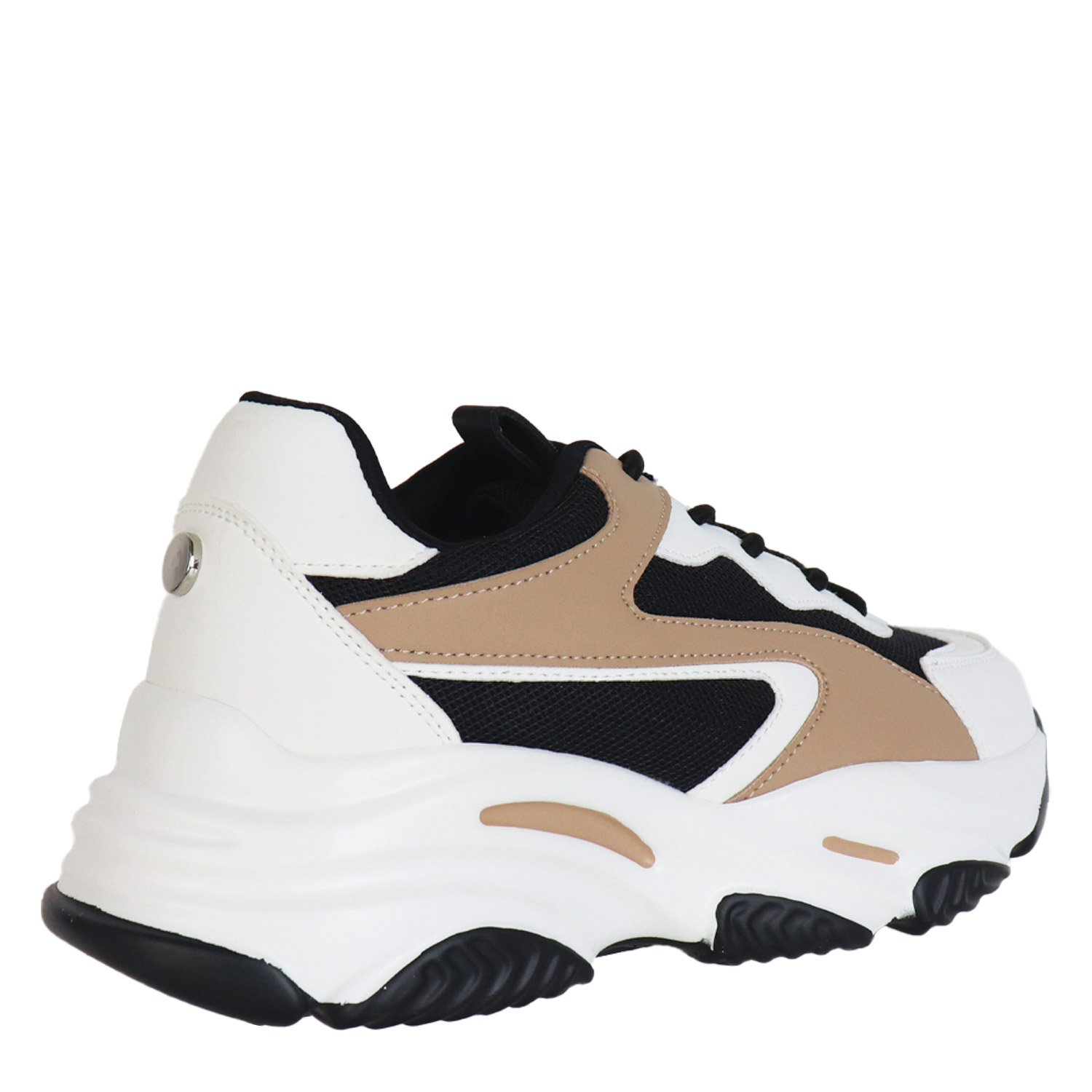 Γυναικείο sneaker σε λευκό με ταμπά και μαύρες λεπτομέρειες. Δένει με κορδόνια.