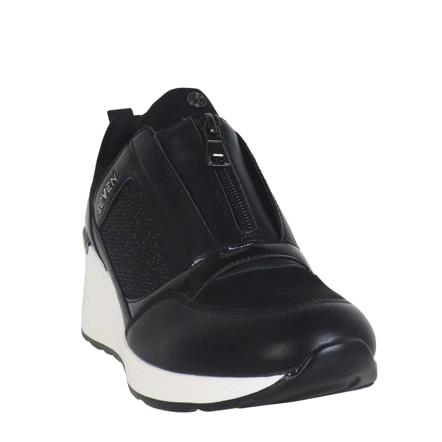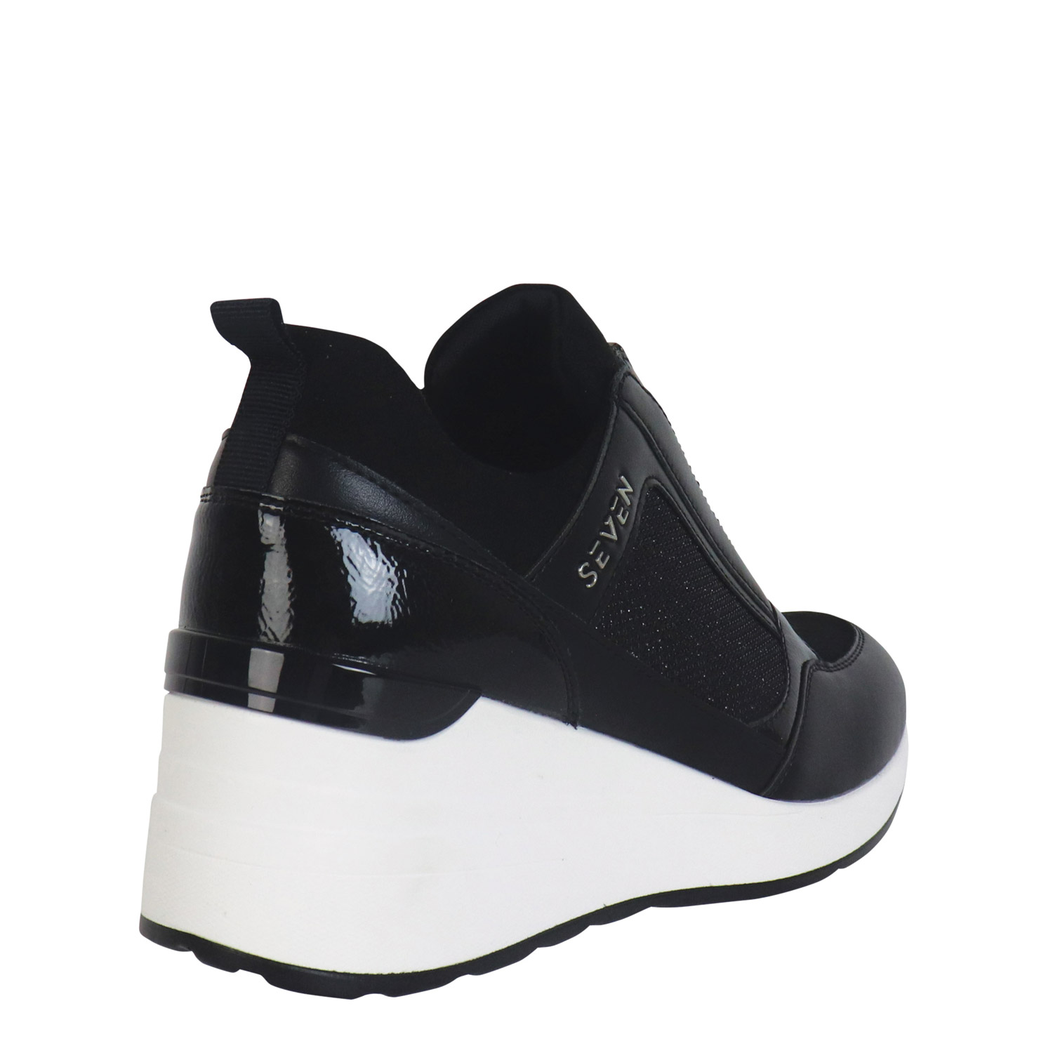 Seven γυναικείο sneaker, σε μαύρο χρώμα, κατασκευασμένο από οικολογικό δέρμα. Ύψος σόλας 6εκ.