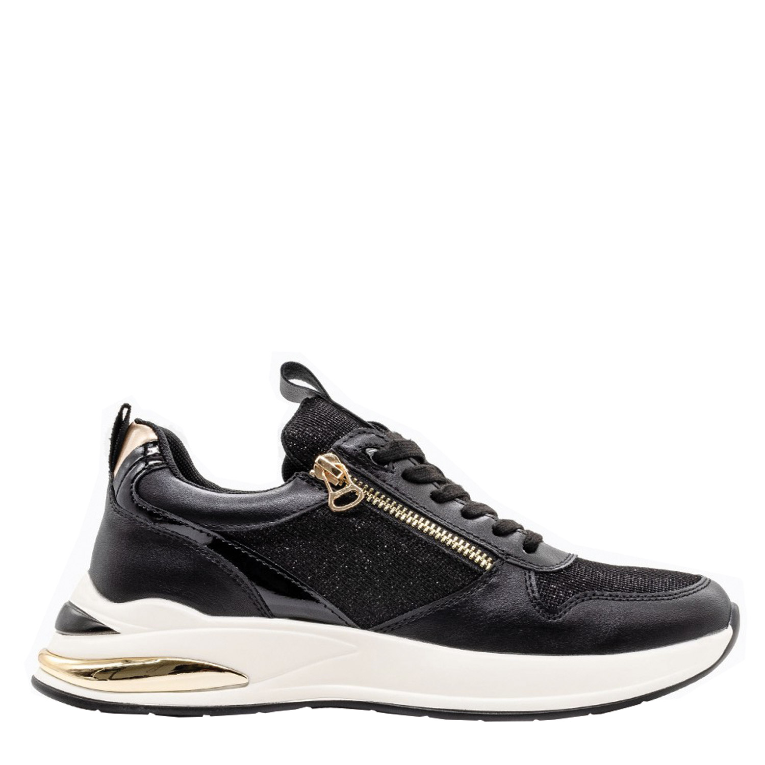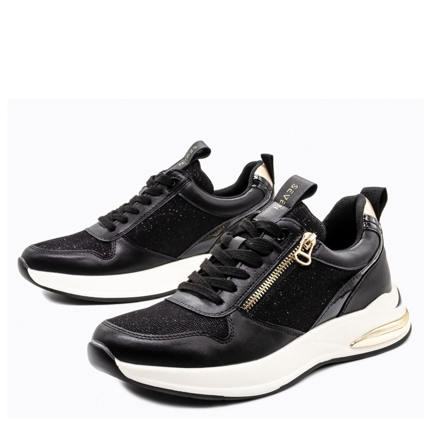 Seven γυναικείο sneaker, σε μαύρο χρώμα, κατασκευασμένο από οικολογικό δέρμα και ύφασμα. Ύψος σόλας 4εκ.