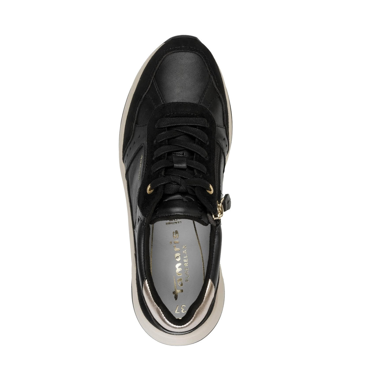 Tamaris γυναικείο sneaker, σε μαύρο χρώμα, κατασκευασμένο από οικολογικό δέρμα. Ύψος σόλας 4εκ.