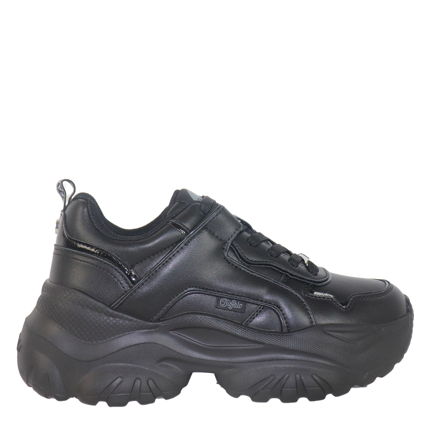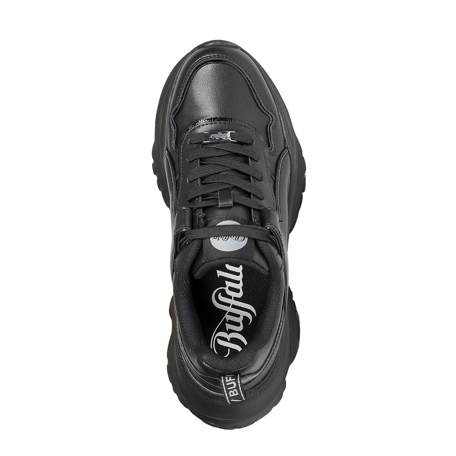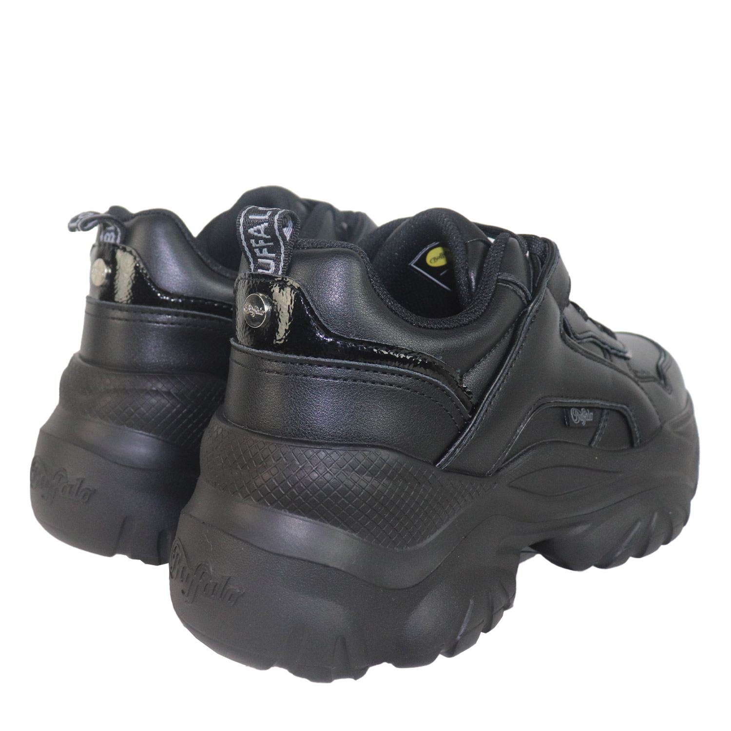Buffalo γυναικείο sneaker, σε μαύρο χρώμα, κατασκευασμένο από οικολογικό δέρμα, με ανατομικό πάτο από memory foam. Ύψος τακουνιού 4εκ.