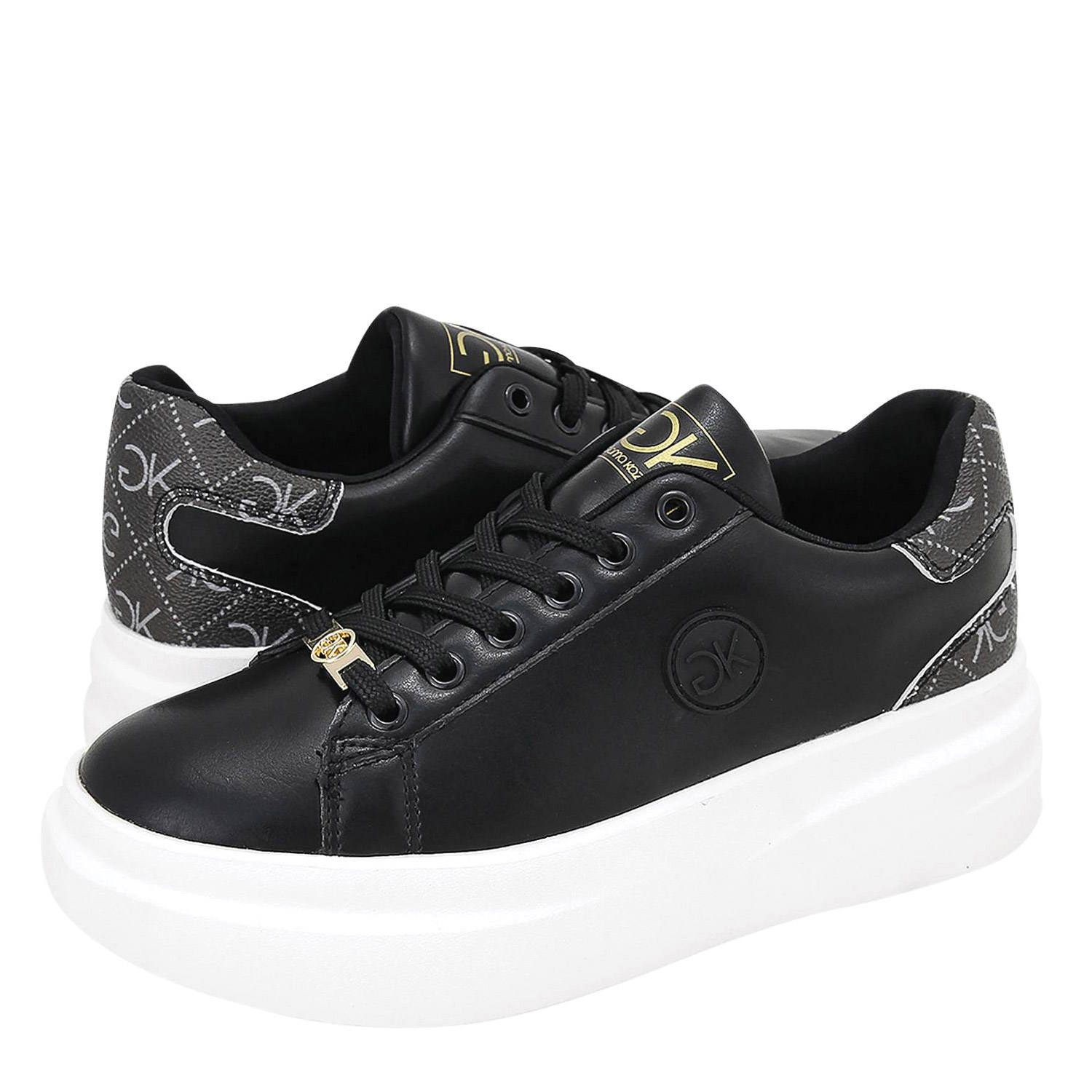 Gianna Kazakou γυναικείο sneaker, σε μαύρο χρώμα, κατασκευασμένο από οικολογικό δέρμα. Ύψος σόλας 4.5εκ.