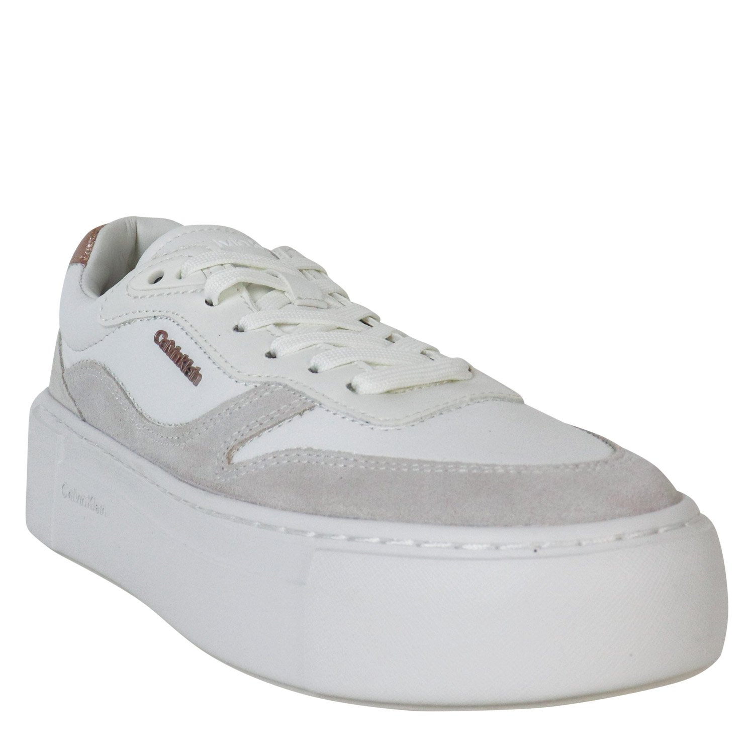 Calvin Klein γυναικείο sneaker, σε μπεζ χρώμα, κατασκευασμένο από δέρμα. Ύψος σόλας 4εκ.