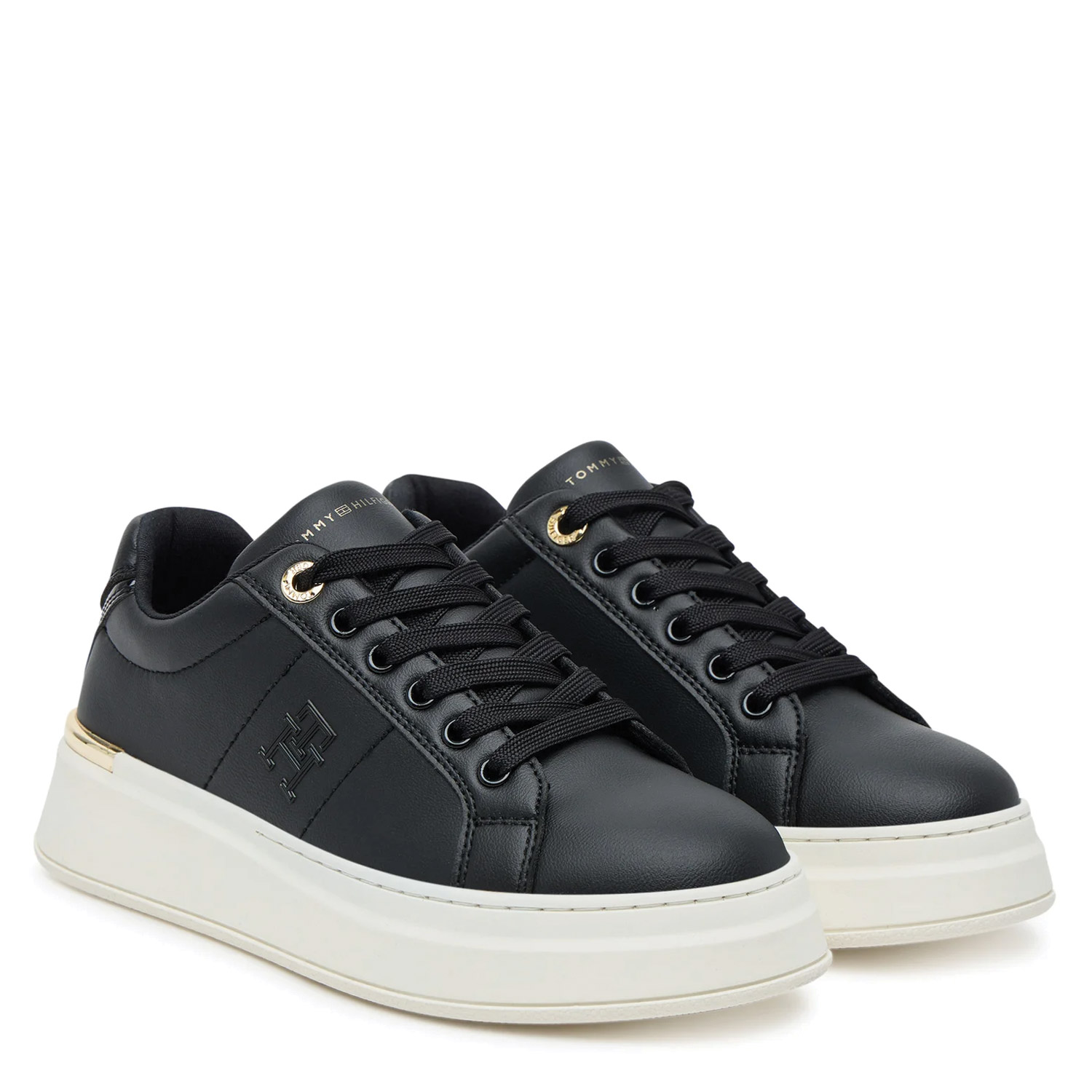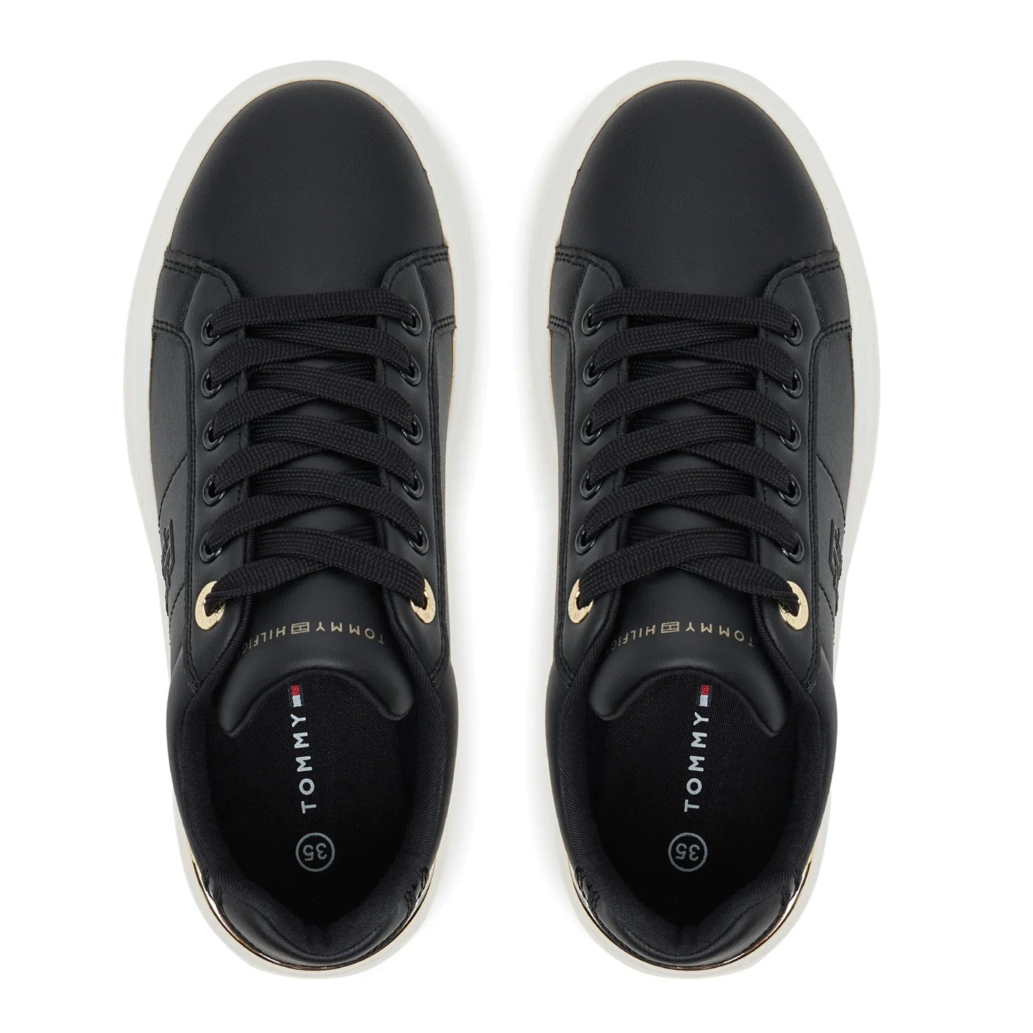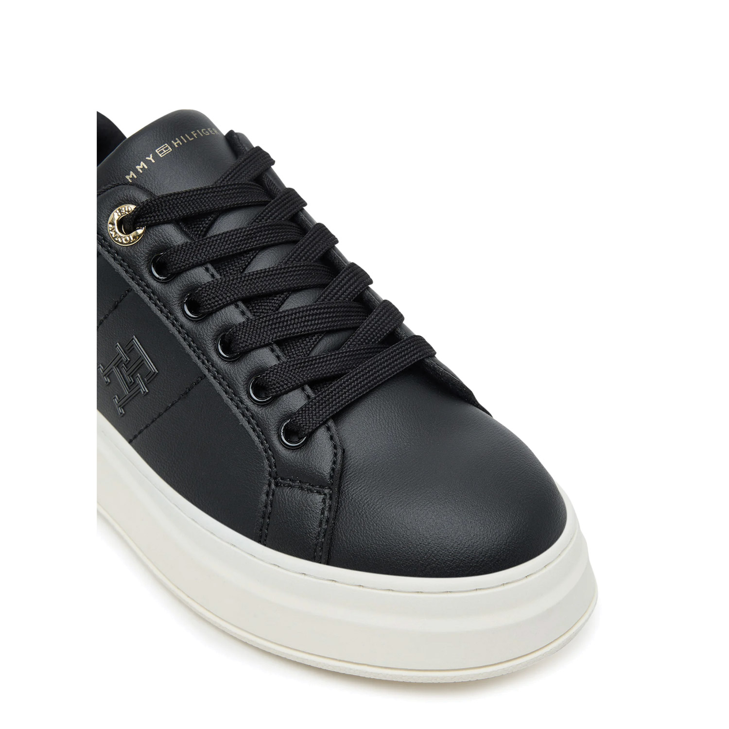 Tommy Hilfiger γυναικείο sneaker, σε μαύρο χρώμα, κατασκευασμένο από οικολογικό δέρμα. Ύψος σόλας 4εκ.