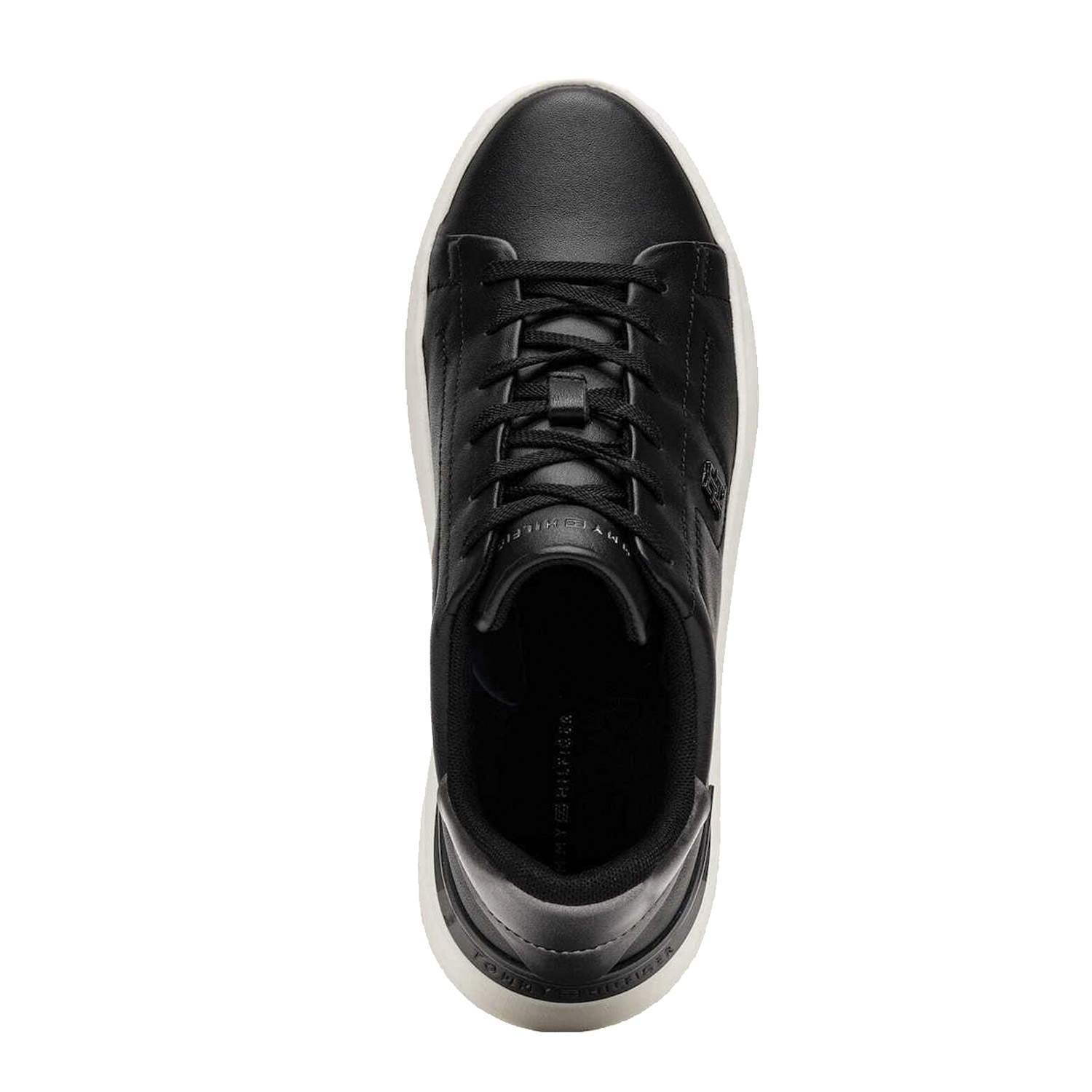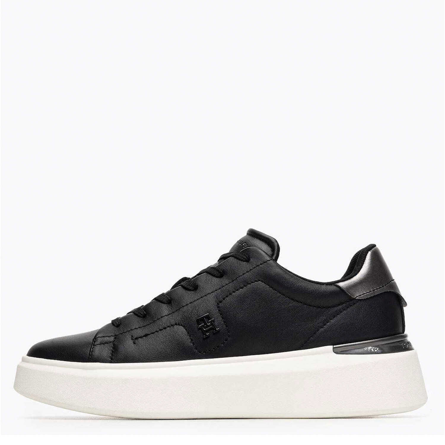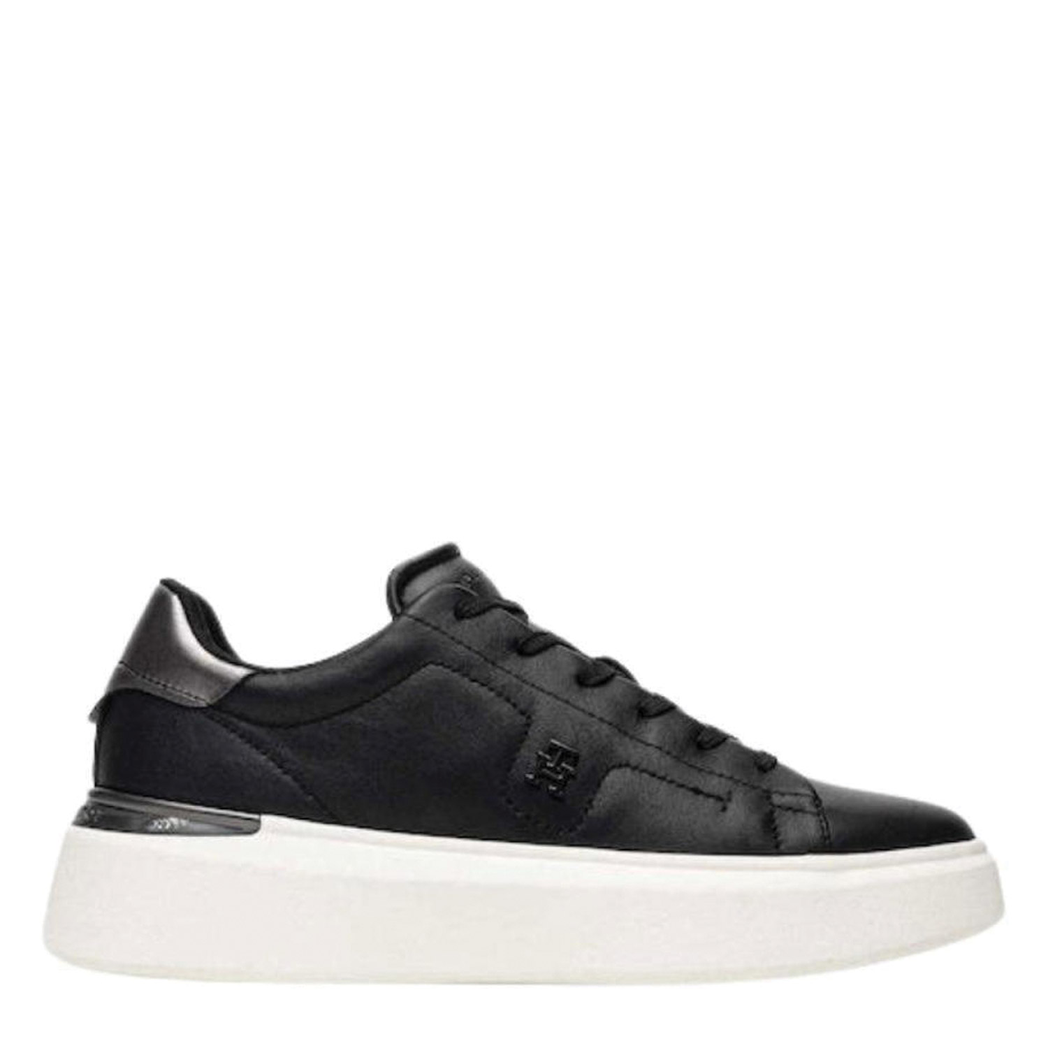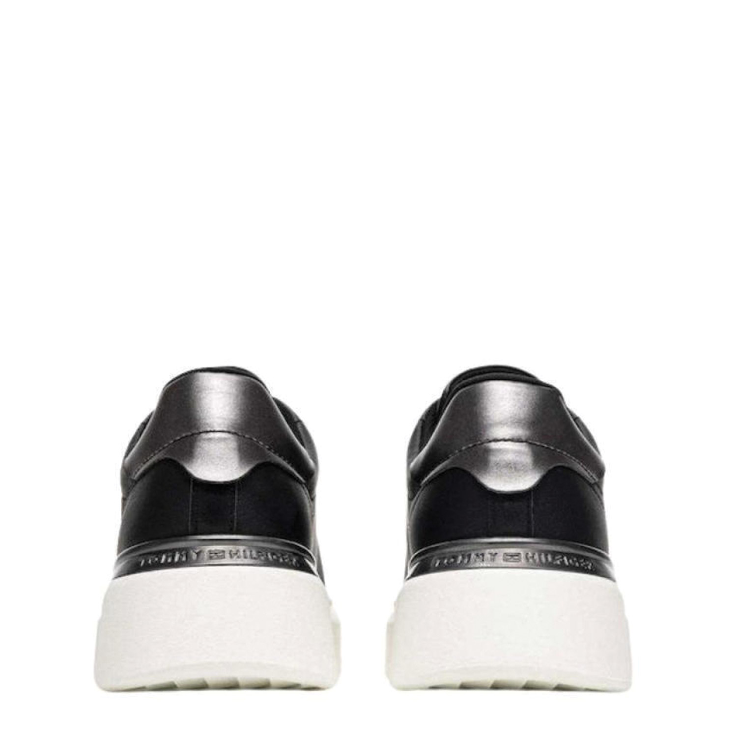 Tommy Hilfiger γυναικείο sneaker, σε μαύρο χρώμα, κατασκευασμένο από δέρμα, με υφασμάτινη φόδρα. Ύψος τακουνιού 4εκ.