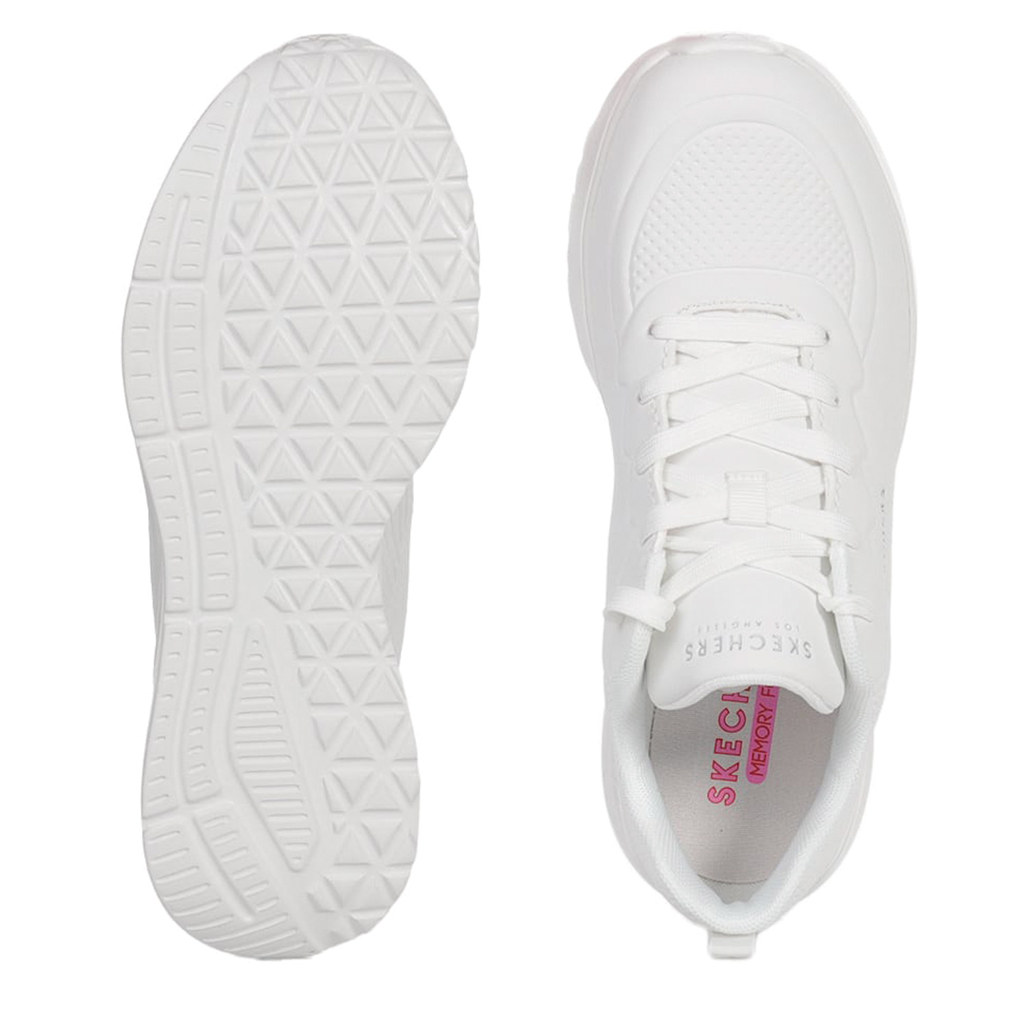 Skechers γυναικείο sneaker, σε λευκό χρώμα, κατασκευασμένο από οικολογικό δέρμα, με ανατομικό πάτο, από memory foam. Ύψος σόλας 4εκ.