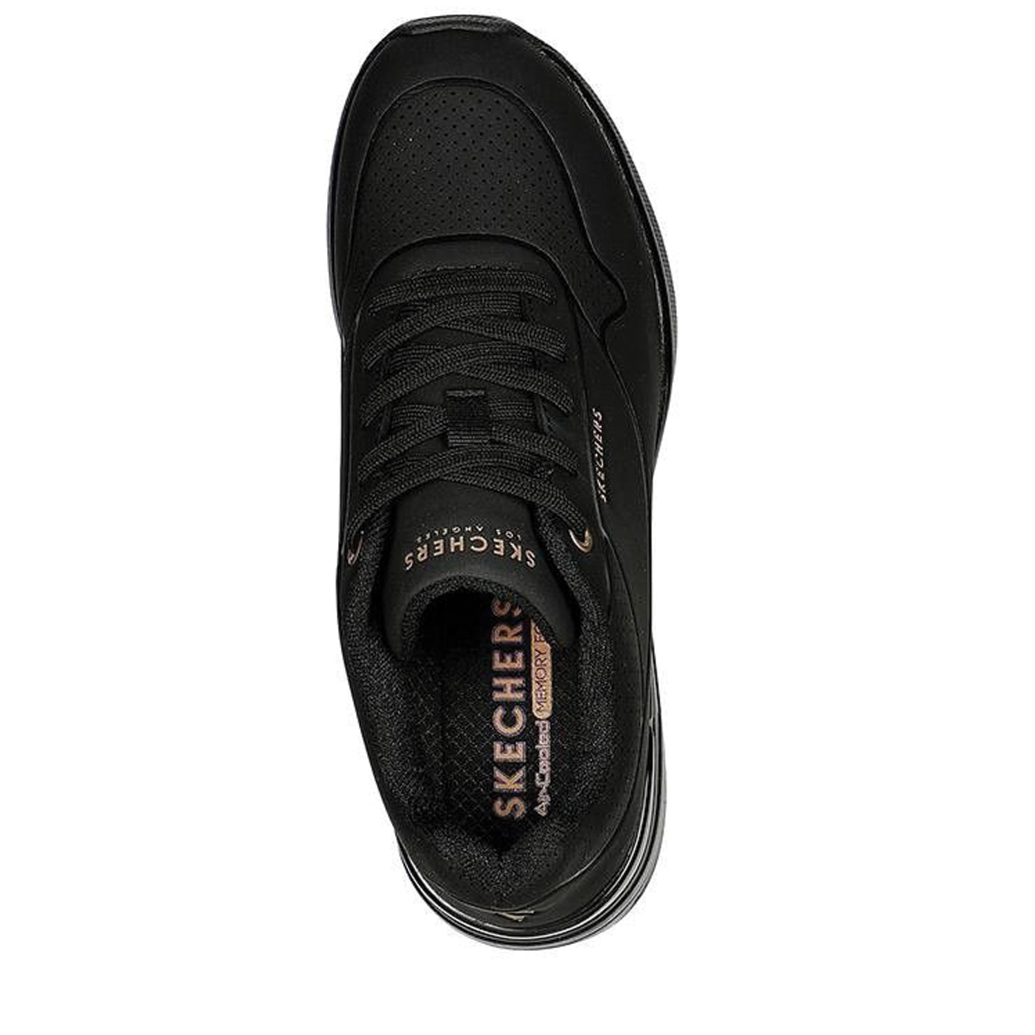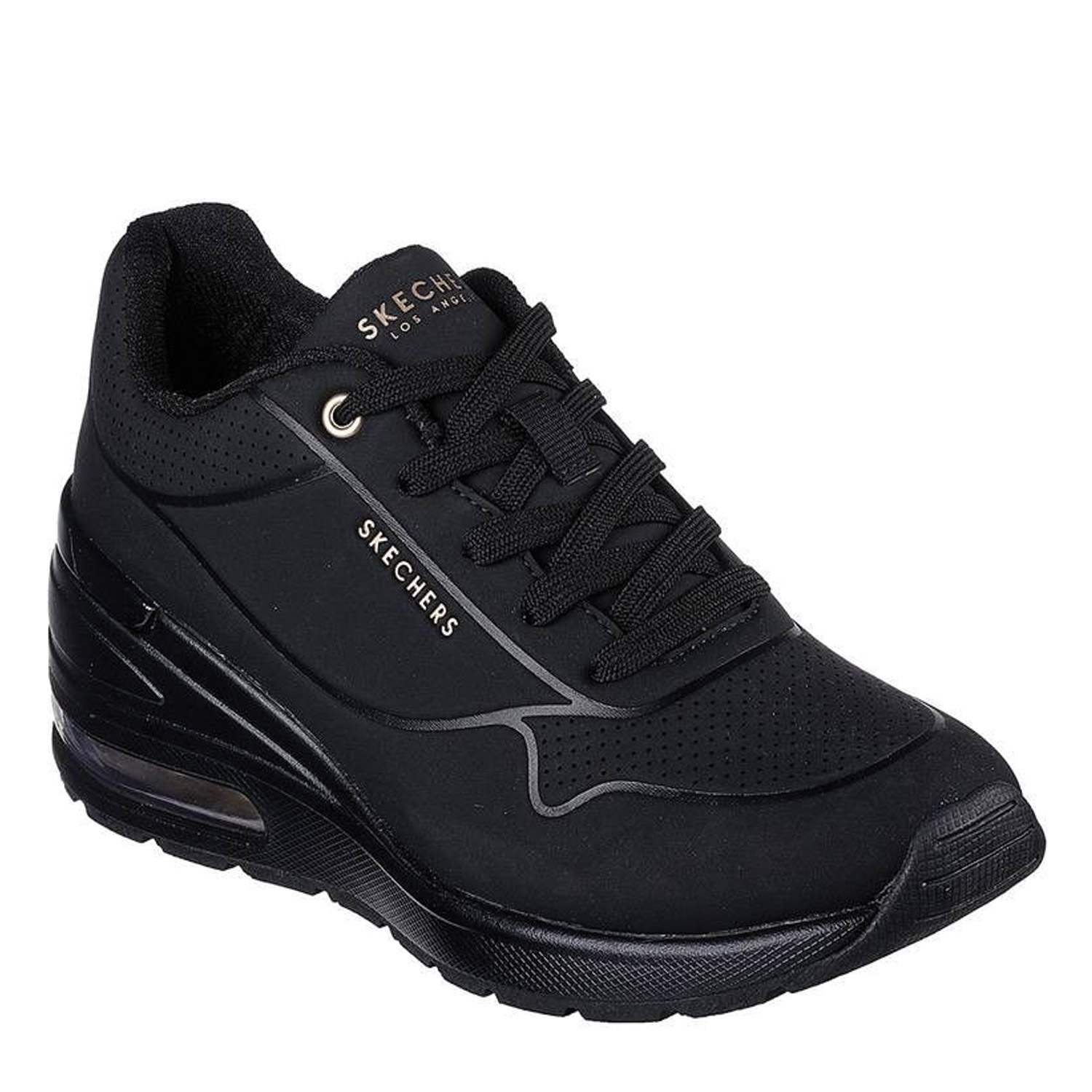 Skechers γυναικείο sneaker, σε μαύρο χρώμα, κατασκευασμένο από οικολογικό δέρμα, με ανατομικό πάτο από memory foam. Ύψος τακουνιού 6.5εκ.