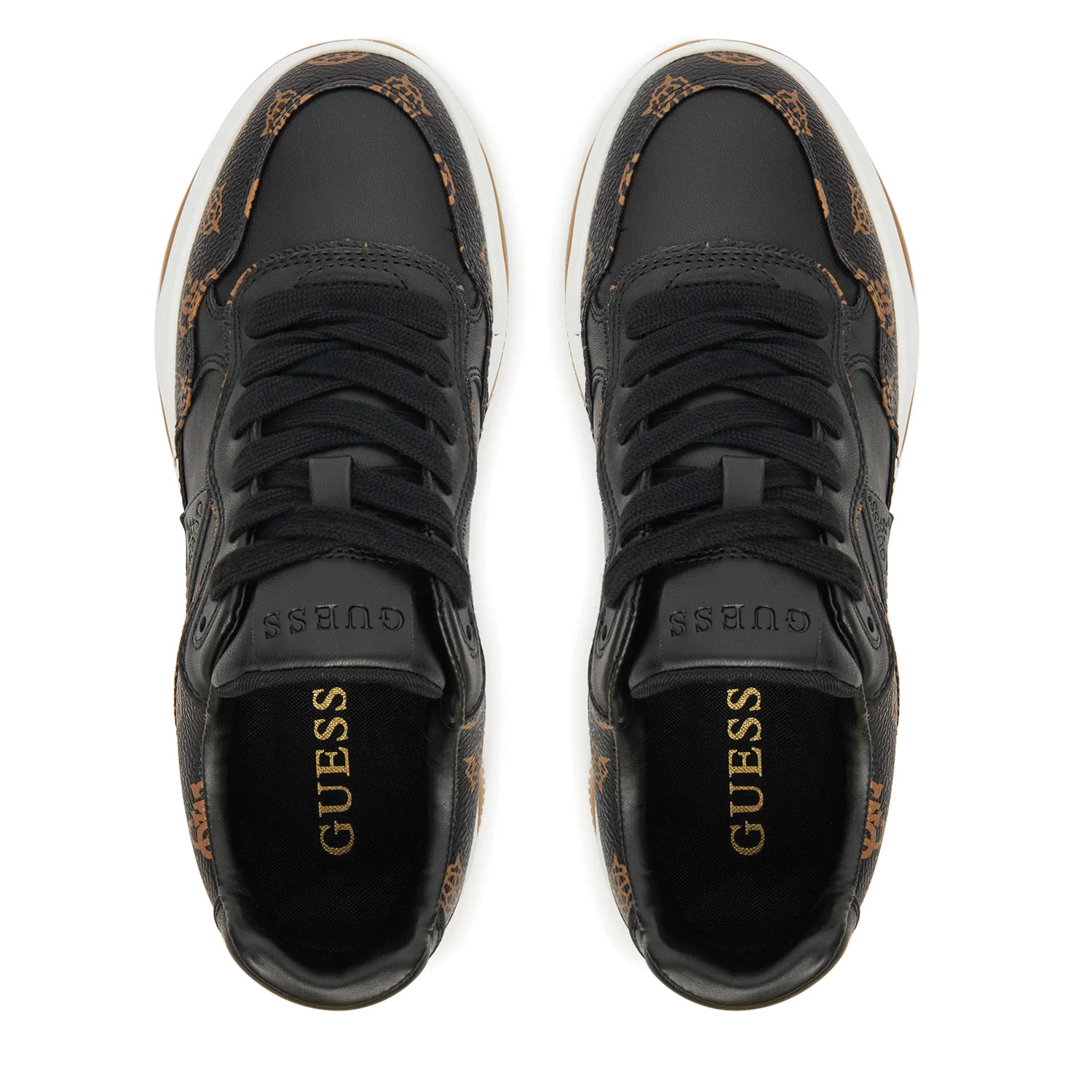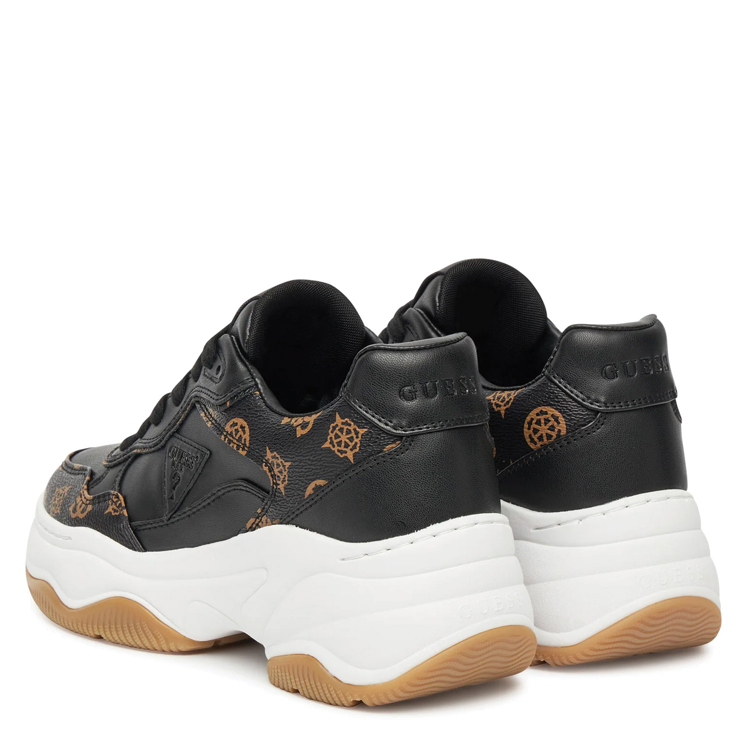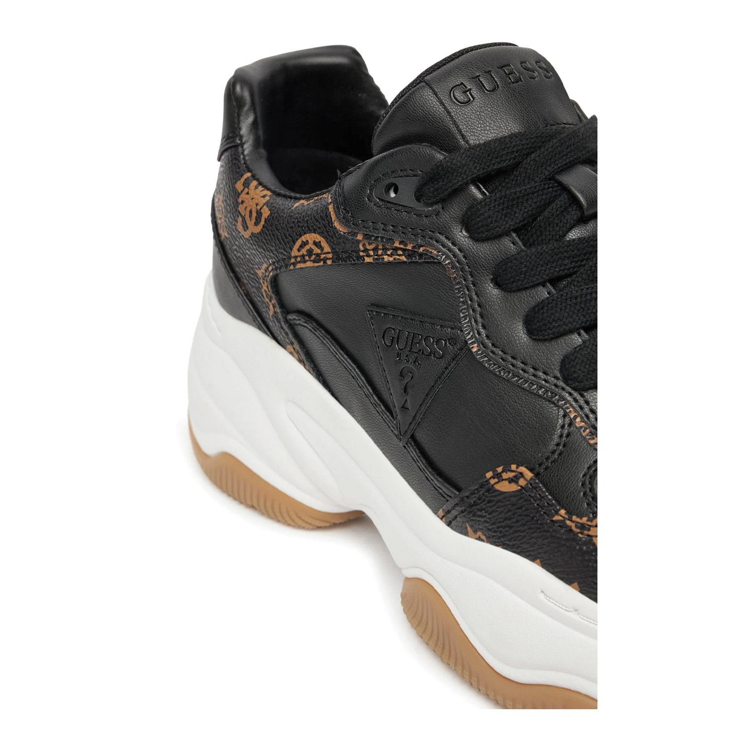 Guess γυναικείο sneaker, σε μαύρο χρώμα, κατασκευασμένο από οικολογικό δέρμα. Ύψος τακουνιού 7.5εκ.