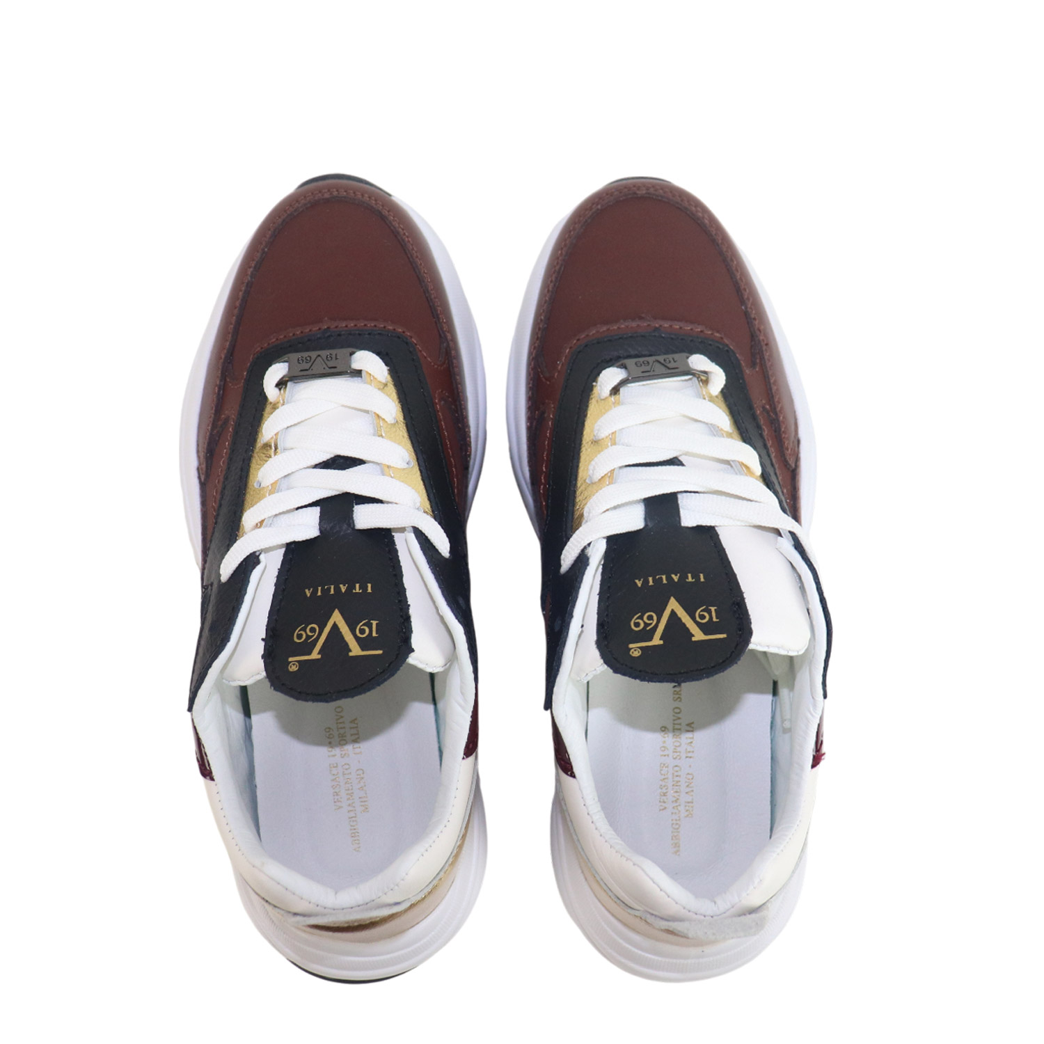Τα γυναικεία sneakers από τη Versace σε καφέ χρώμα συνδυάζουν στυλ και άνεση. Κατασκευασμένα από οικολογικό δέρμα προσφέρουν ανθεκτικότητα και ποιοτική αίσθηση. Το δέσιμο γίνεται μέσω κορδονιών, εξασφαλίζοντας σταθερή εφαρμογή κατά τη διάρκεια της χρήσης.