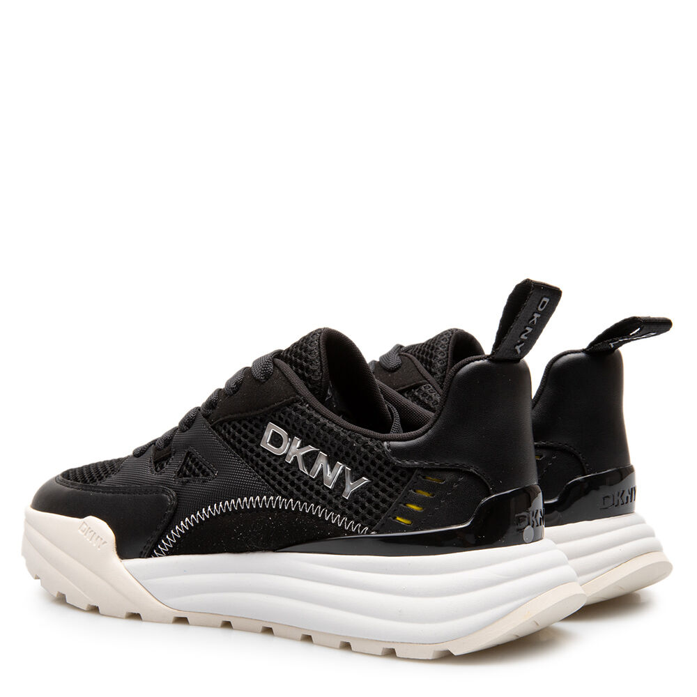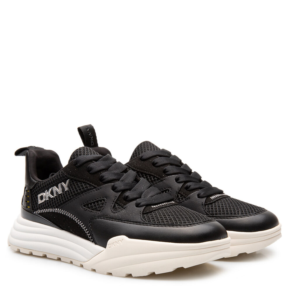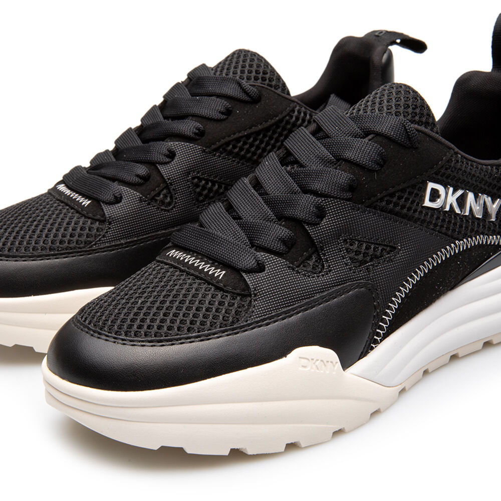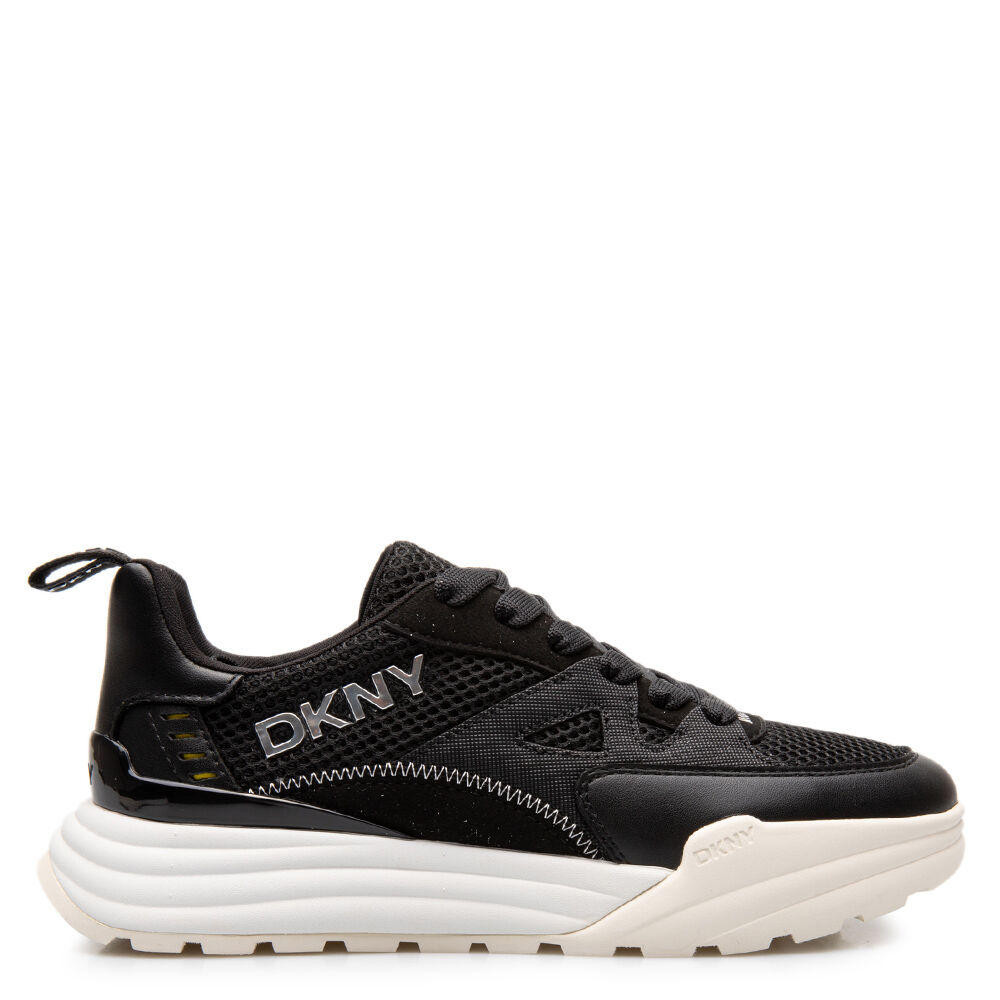 DKNY γυναικείο sneaker, σε μαύρο χρώμα, καταασκευασμένο από ύφασμα και οικολογικό δέρμα. Ύψος σόλας 3εκ.