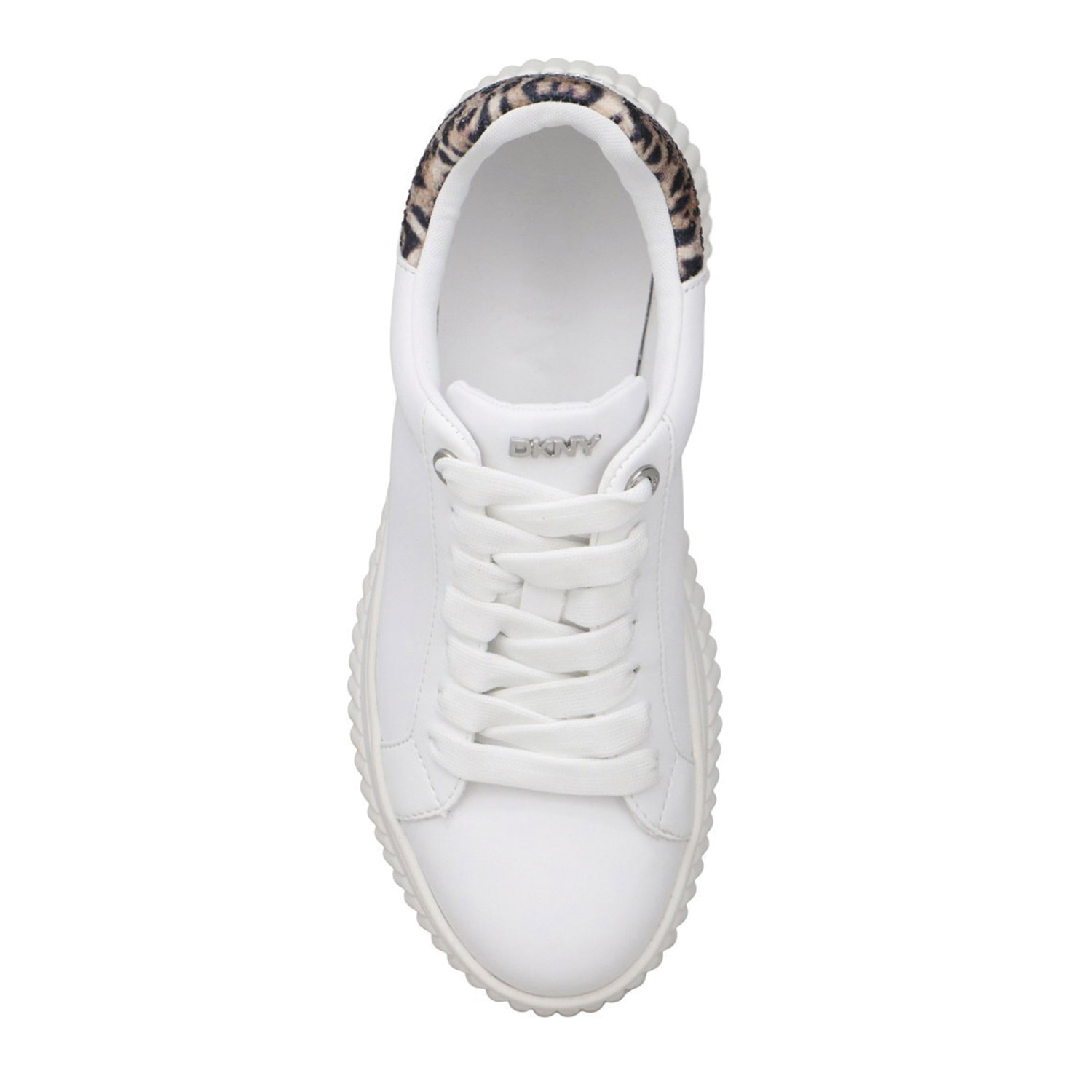 DKNY γυναικείο sneaker, σε λευκό χρώμα, κατασκευασμένο από οικολογικό δέρμα. Ύψος σόλας 3εκ.