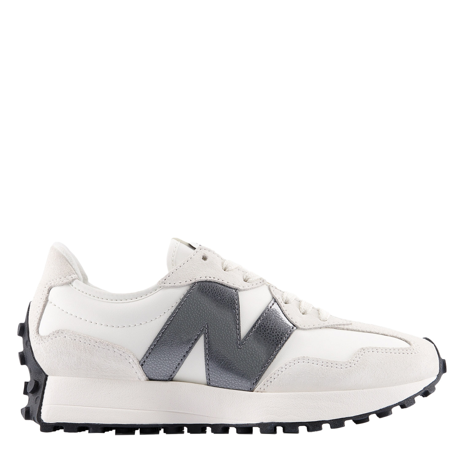 New Balance 327 γυναικείο sneaker, σε μπεζ-γκρι χρώμα, κατασκευασμένο από ύφασμα και καστόρι, με ανατομικό πάτο. Ύψος σόλας 3εκ.