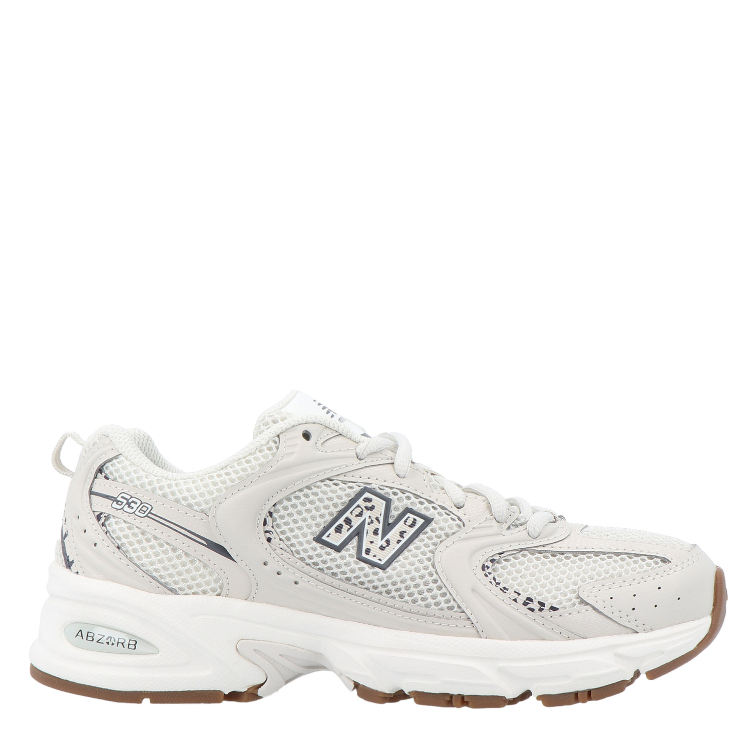 New Balance 530 γυναικείο sneaker, σε μπεζ-λεοπάρ χρώμα, κατασκευασμένο από ύφασμα και οικολογικό δέρμα. Ύψος σόλας 4.5εκ.