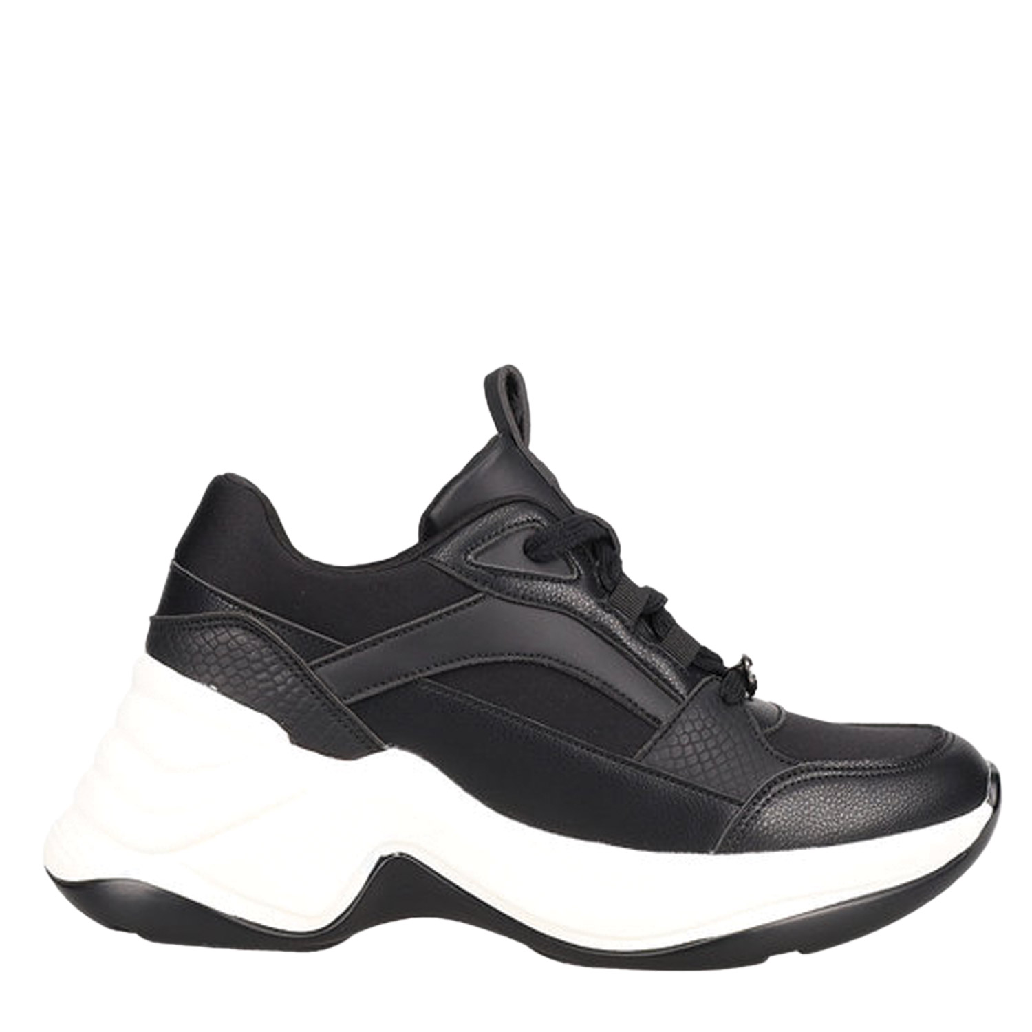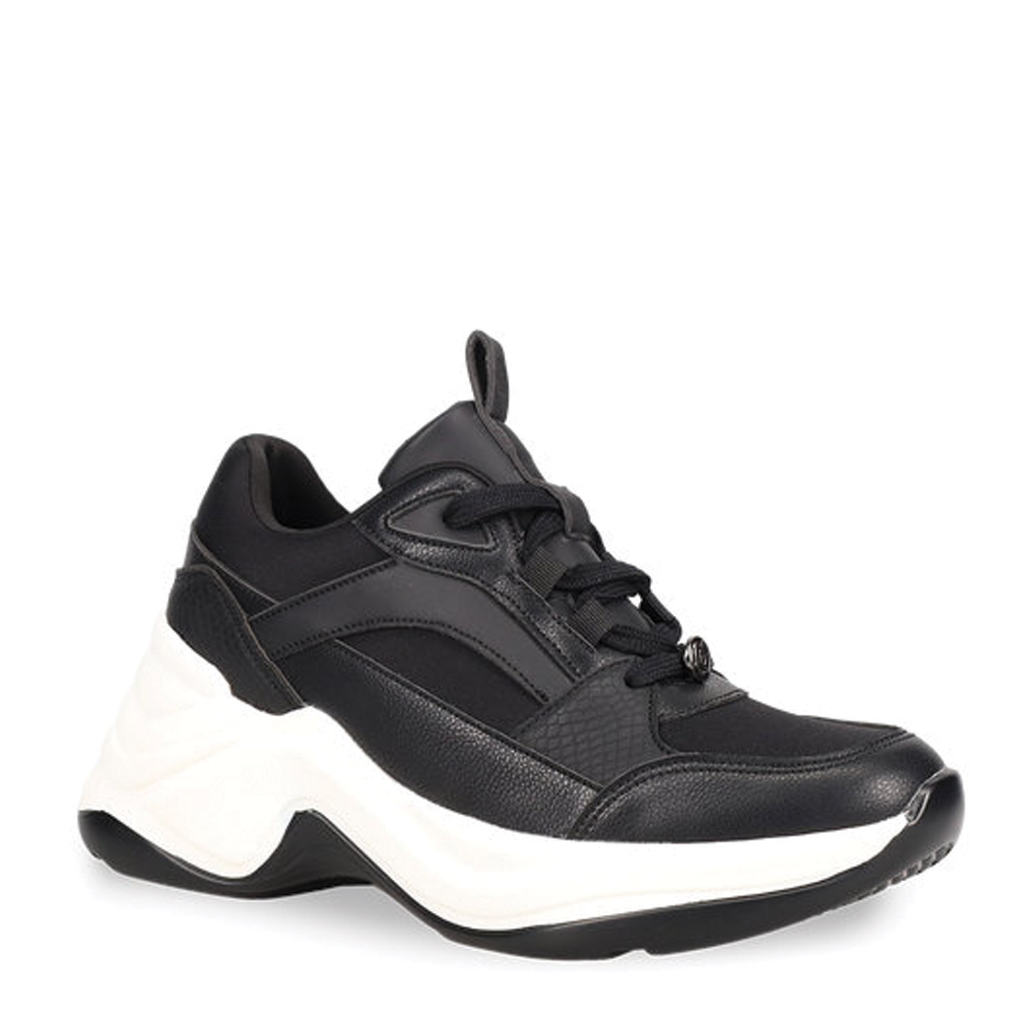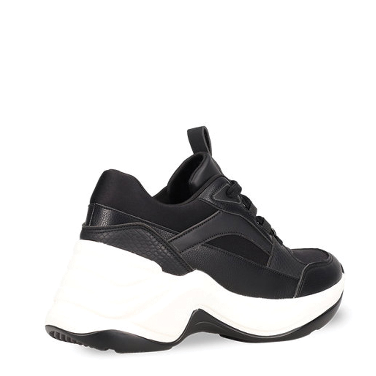 Μαύρο sneaker με λευκή υπερυψωμένη σόλα. Δένει με κορδόνια.