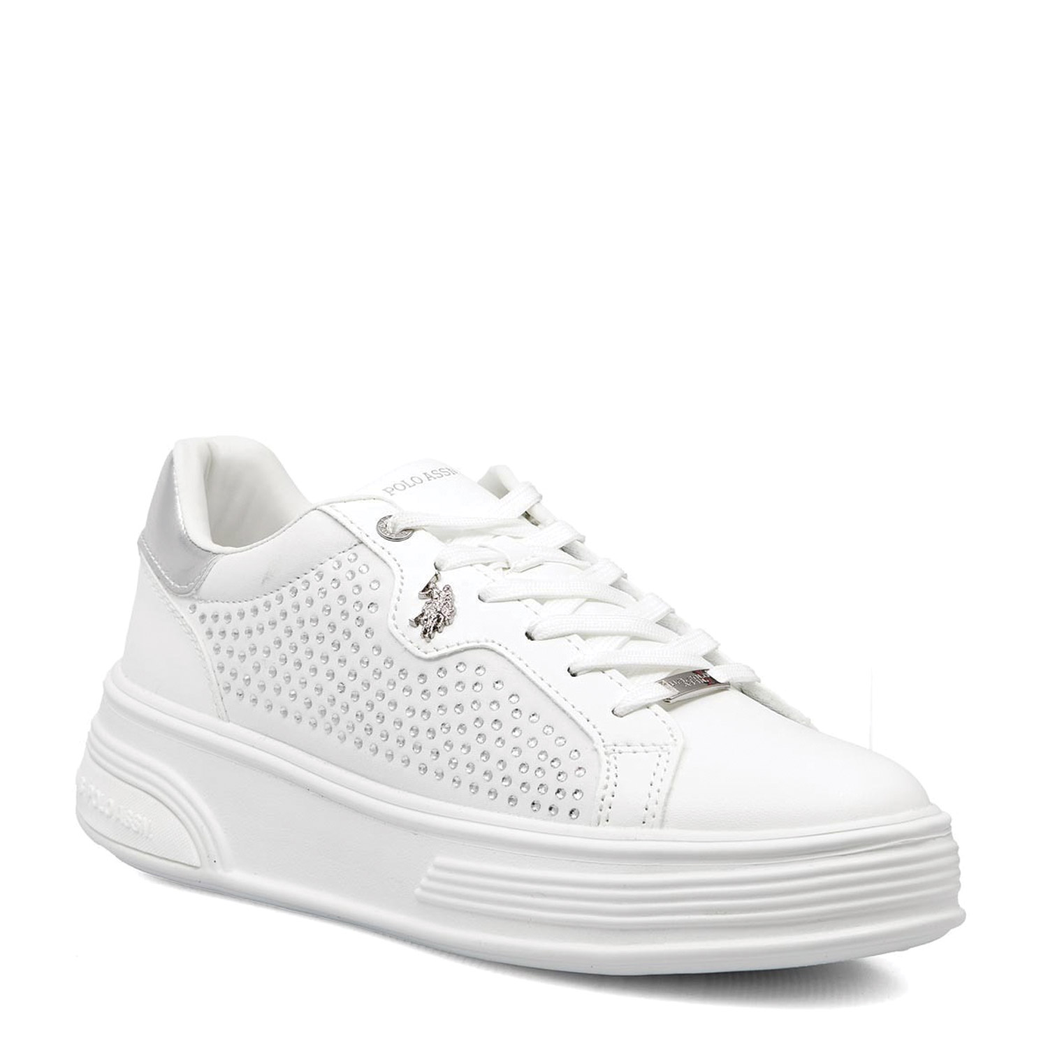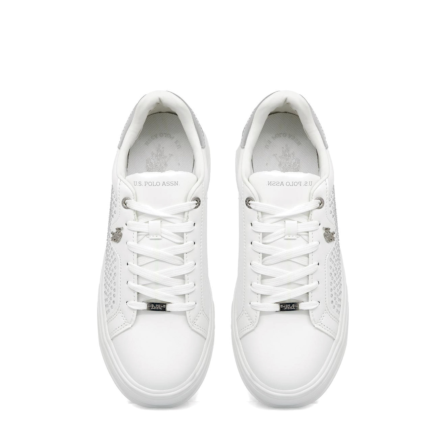 U.S. Polo ASSN γυναικείο sneaker, σε λευκό χρώμα, κατασκευασμένο από οικολογικό δέρμα. Ύψος σόλας 5εκ.