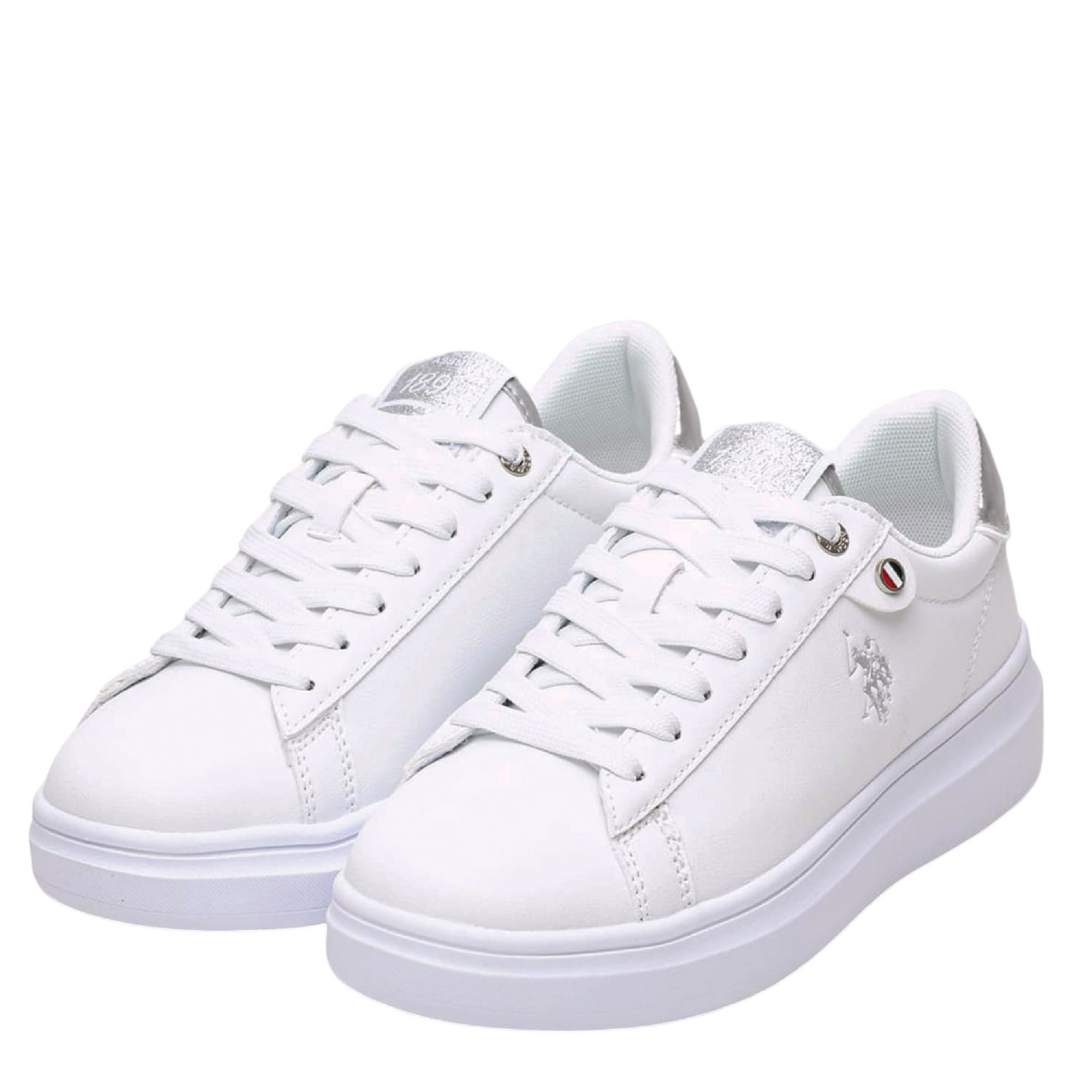 U.S. Polo ASSN γυναικείο sneaker, σε λευκό χρώμα, κατασκευασμένο από οικολογικό δέρμα. Ύψος τακουνιού 4εκ.