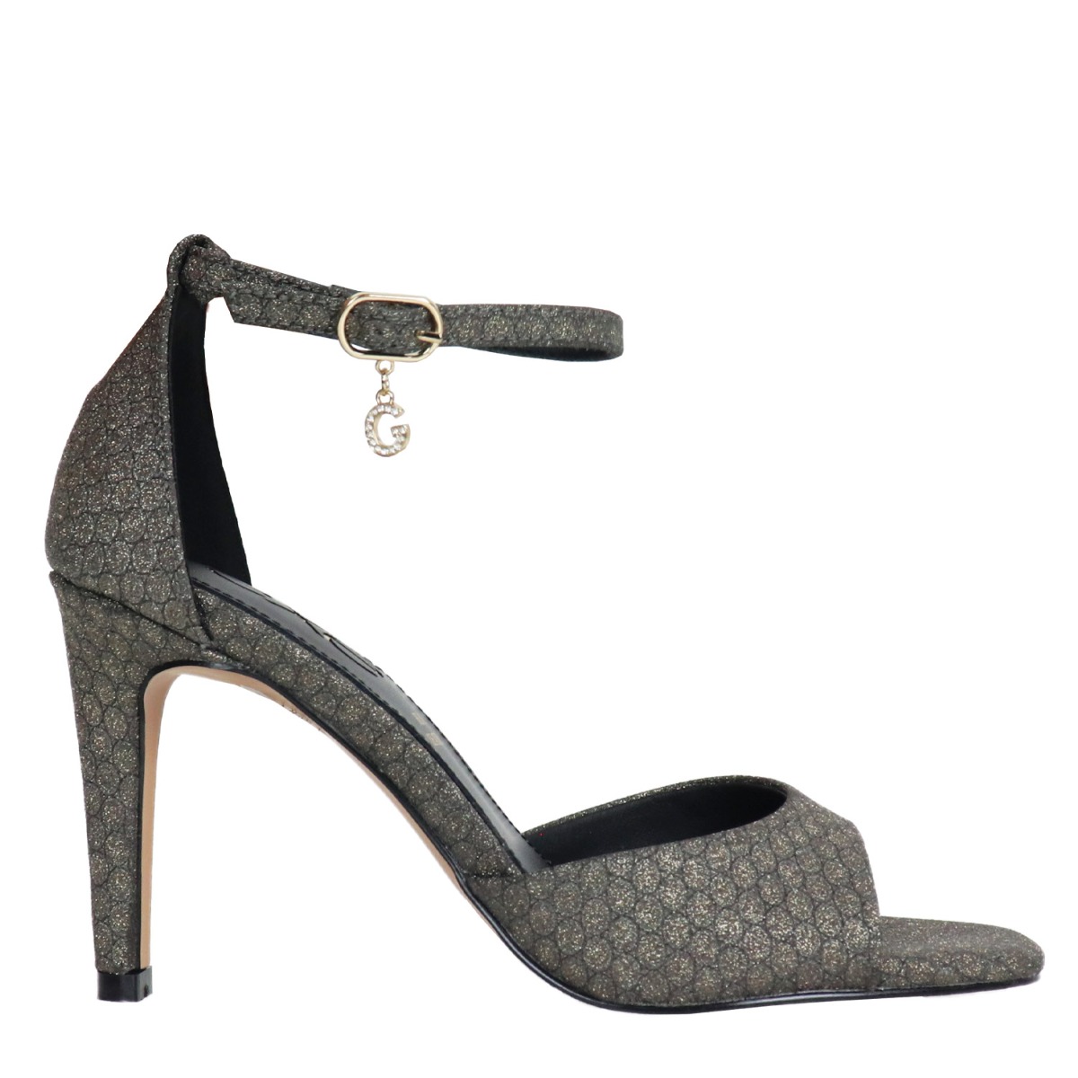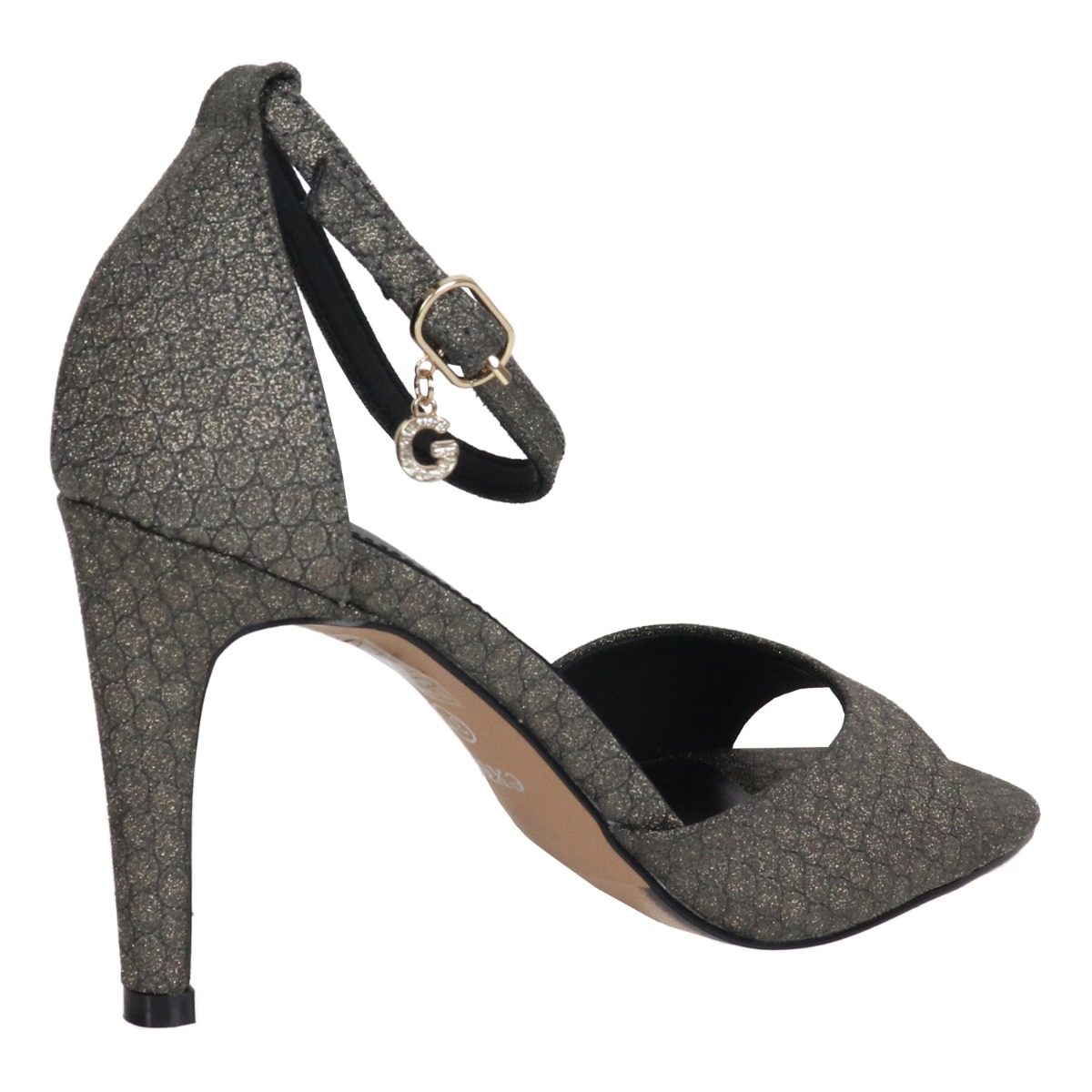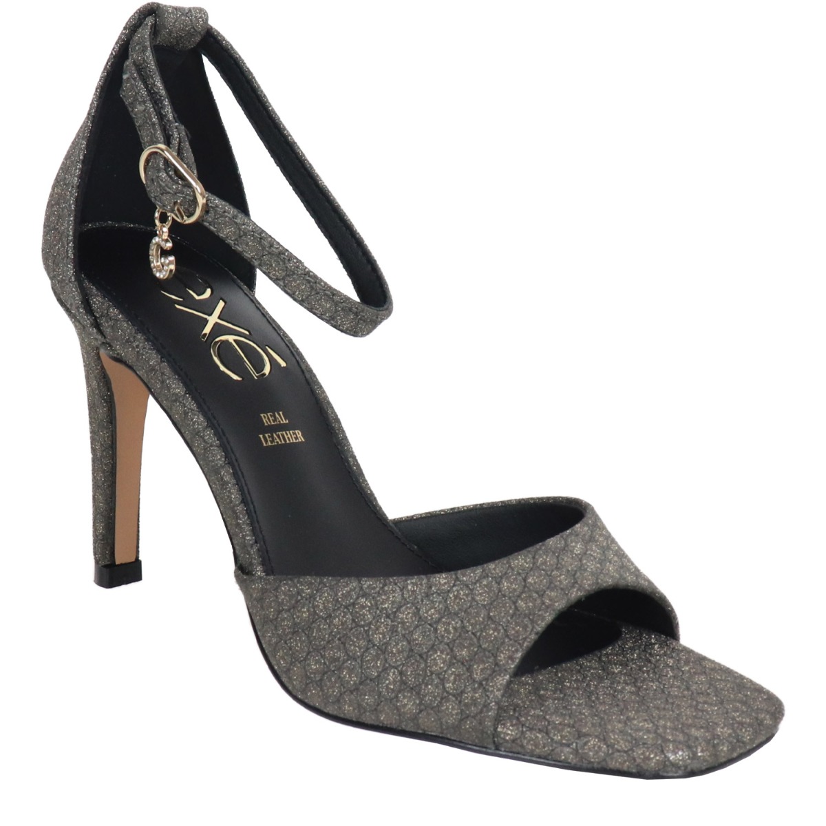 Exe γυναικείο πέδιλο σε ατσαλί χρώμα κατασκευασμένο από ύφασμα με glitter. Ύψος τακουνιού 9εκ.