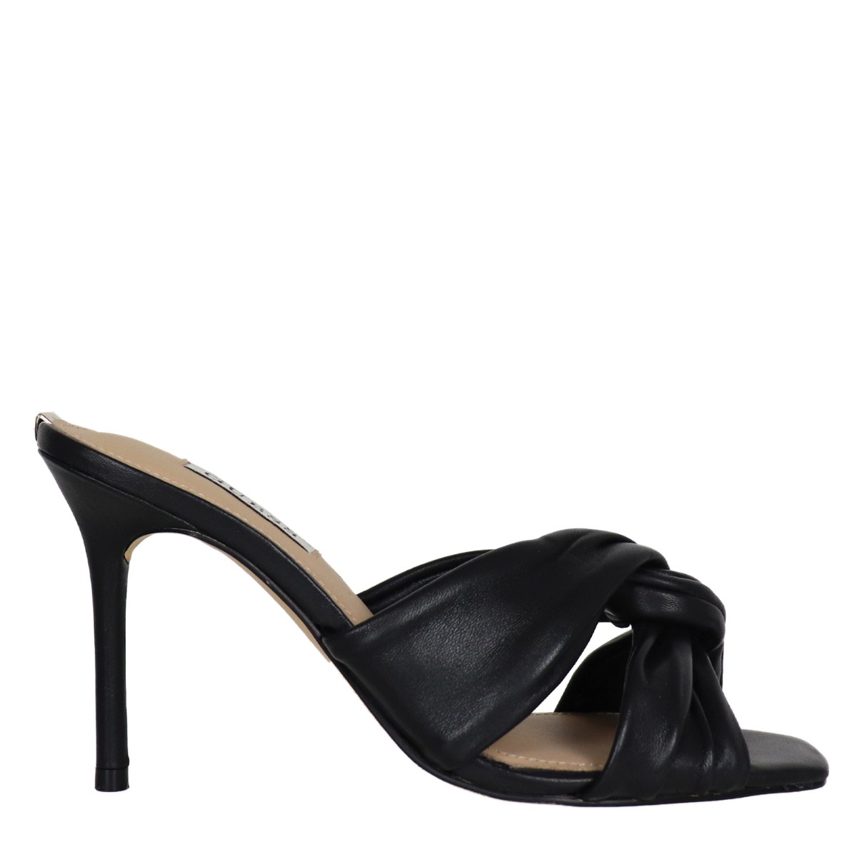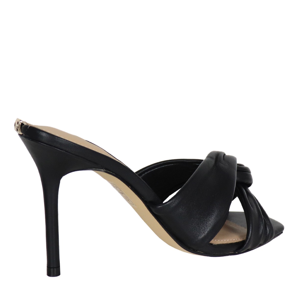 Guess γυναικείο πέδιλο σε μαύρο χρώμα κατασκευασμένο από δέρμα, με δερμάτινο ανατομικό πατάκι. Ύψος τακουνιού 10εκ.