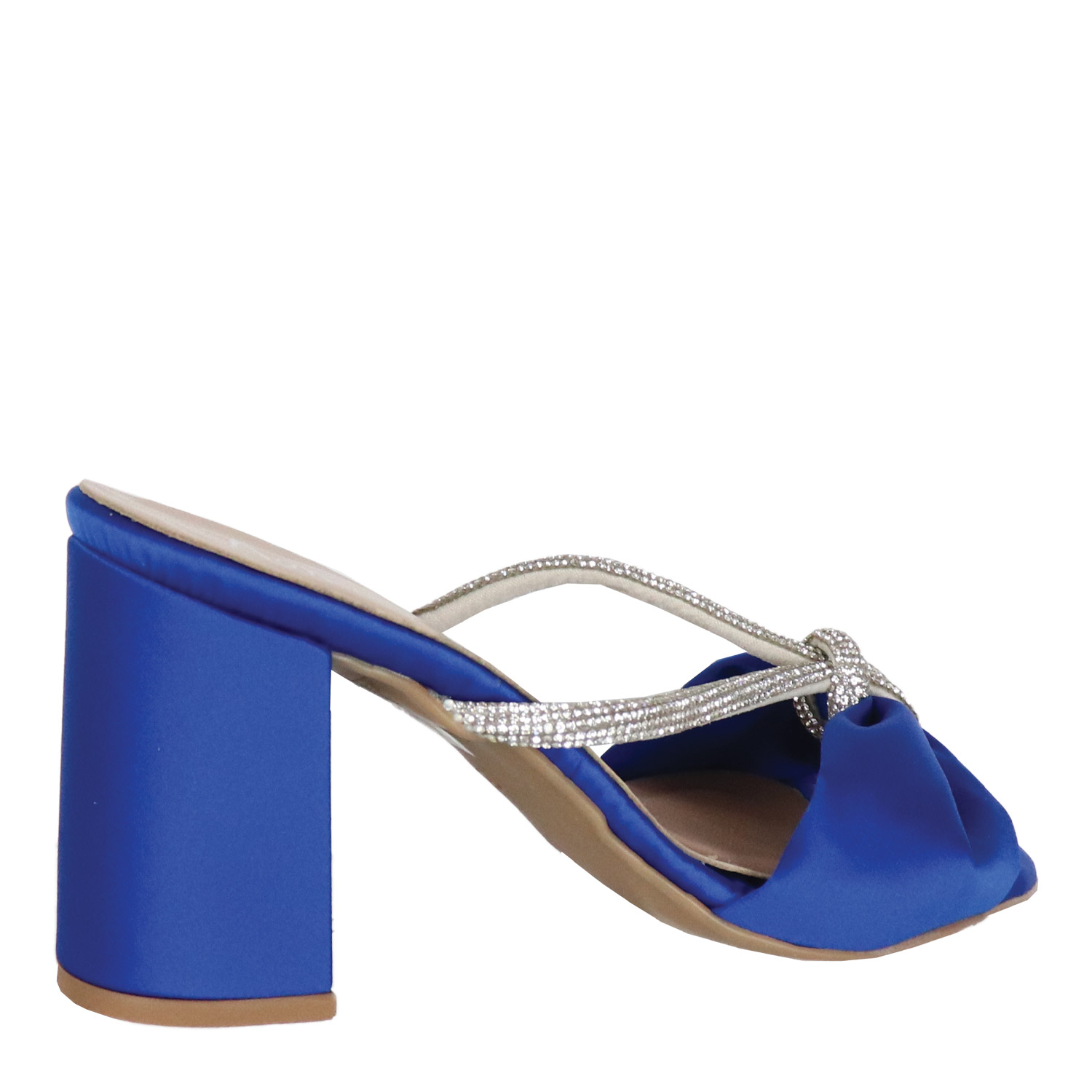 Koniarisshoes γυναίκειο πέδιλο σε μπλε χρώμα κατασκευασμένο από σατέν ύφασμα. Ύψος τακουνιού 8,5εκ.