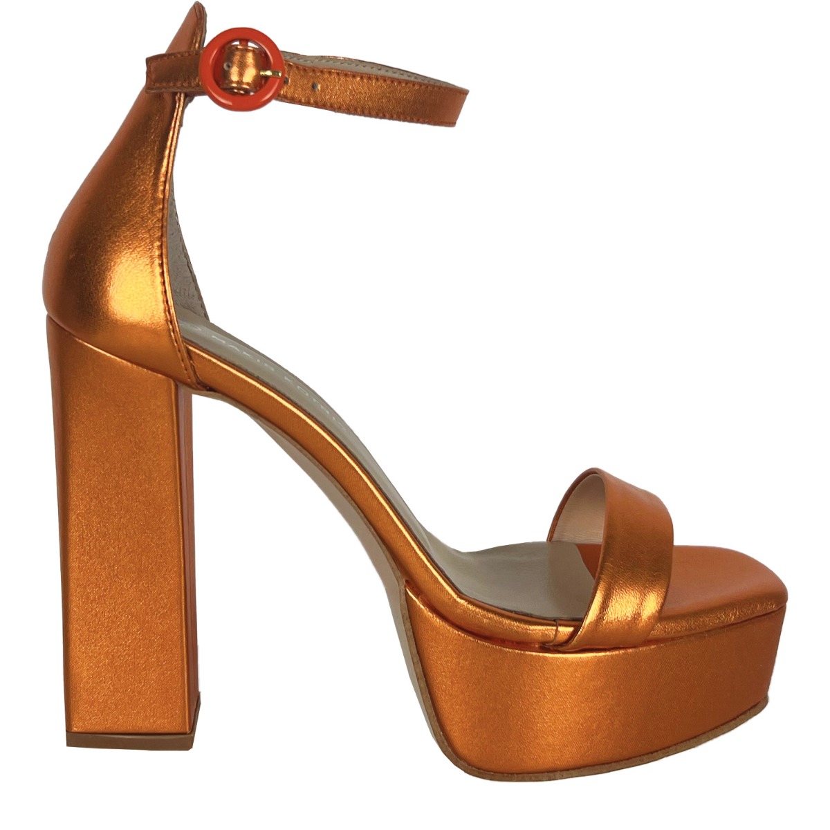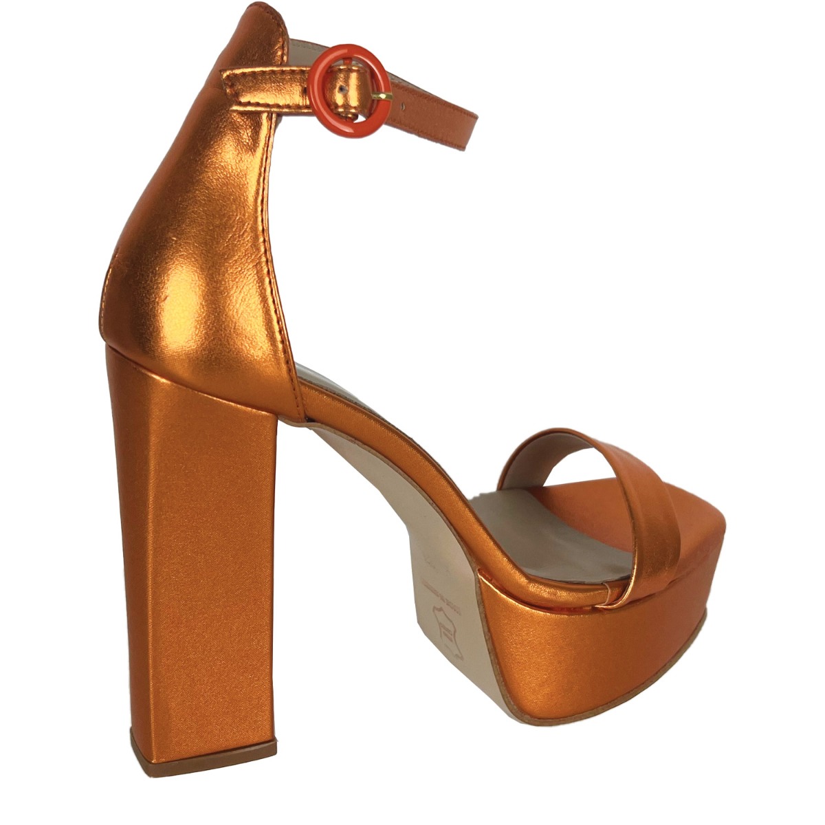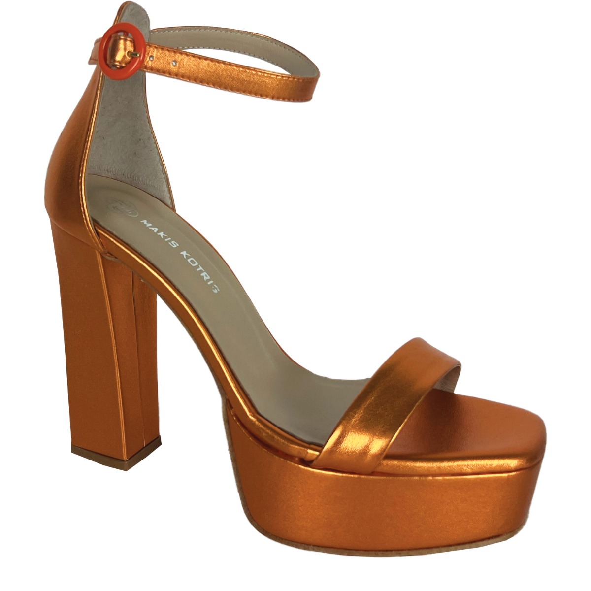 Makis Kotris γυναικείο πέδιλο σε πορτοκαλί χρώμα κατασκευασμένο από δέρμα. Ύψος τακουνιού 12εκ.