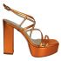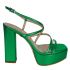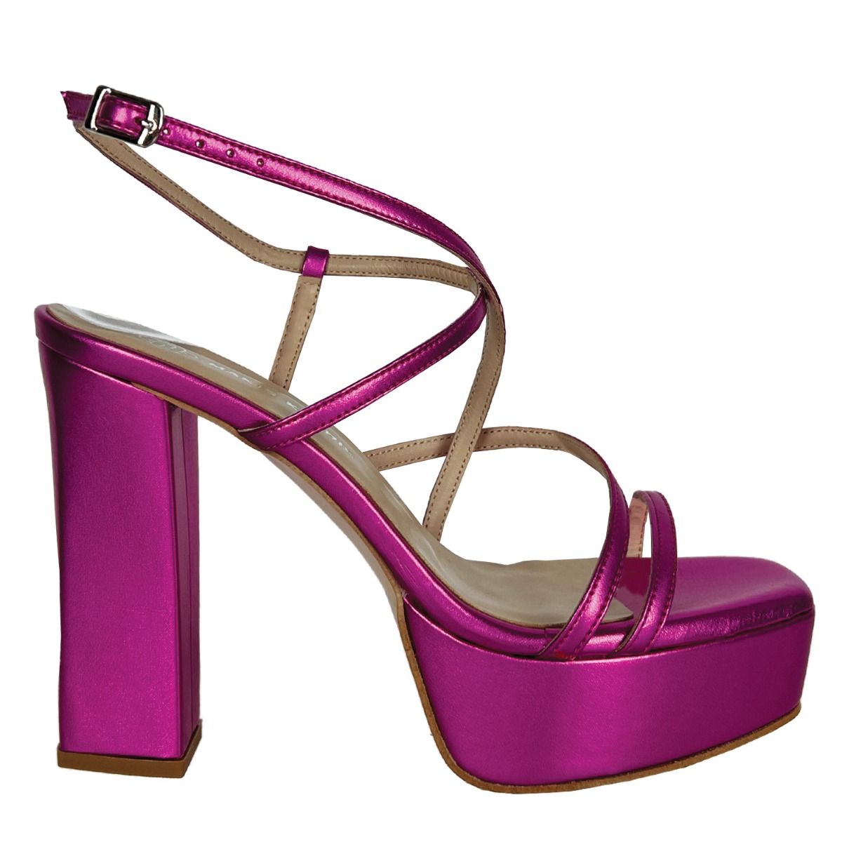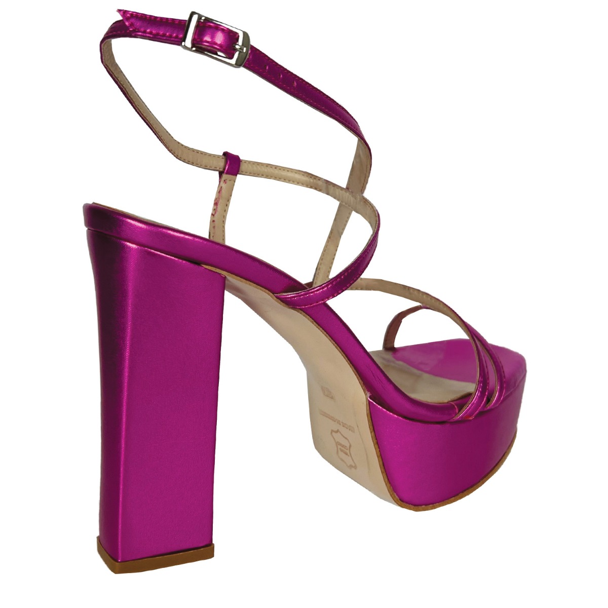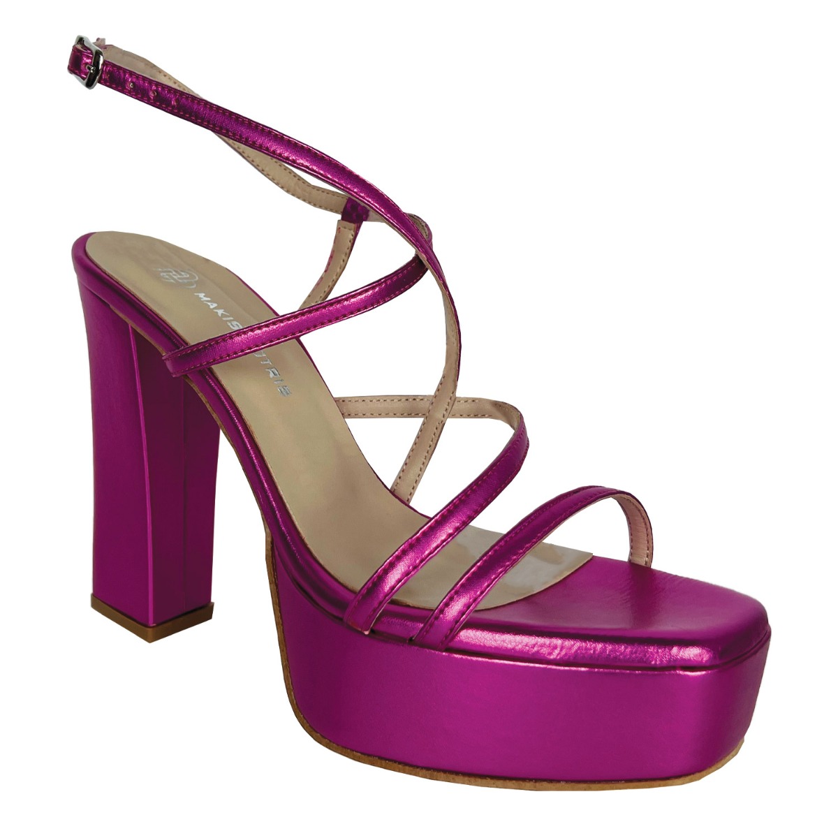 Makis Kotris γυναικείο πέδιλο σε φούξια χρώμα κατασκευασμένο από ύφασμα σατέν. Ύψος τακουνιού 13εκ.