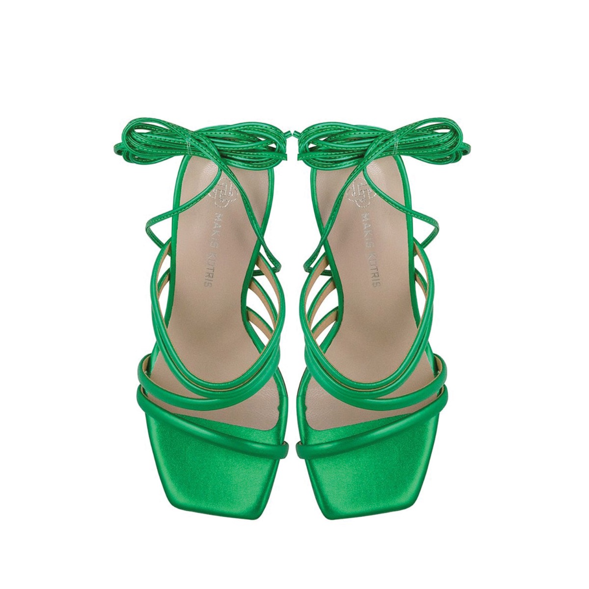 Makis Kotris γυναικείο πέδιλο σε πράσινο χρώμα κατασκευασμένο από οικολογικό δέρμα. Ύψος τακουνιού 11εκ.