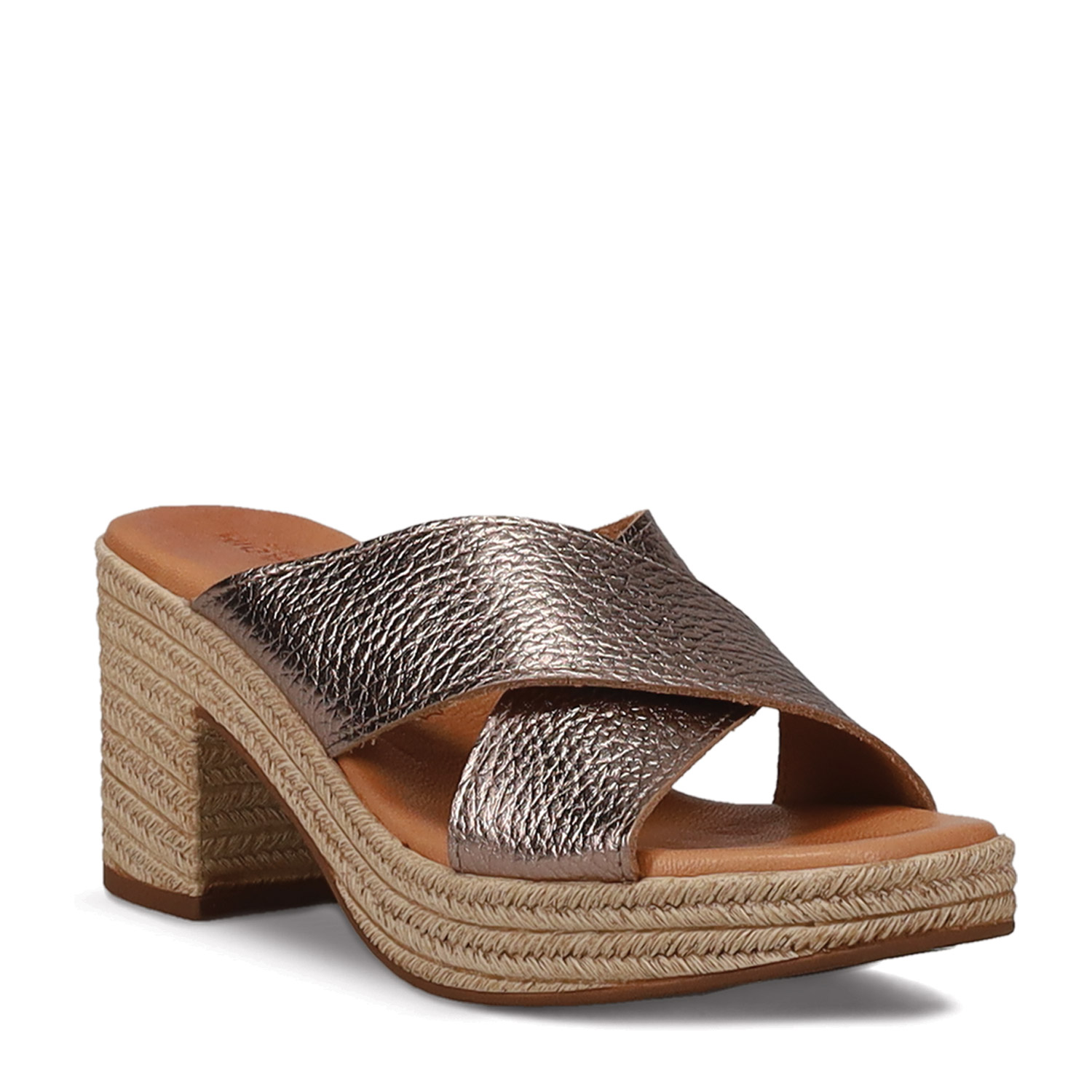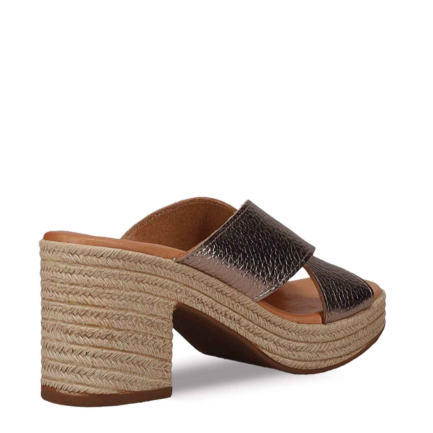 Migato γυναικείο πέδιλο σε χρυσό χρώμα κατασκευασμένο από δέρμα. Ύψος σόλας 8εκ.