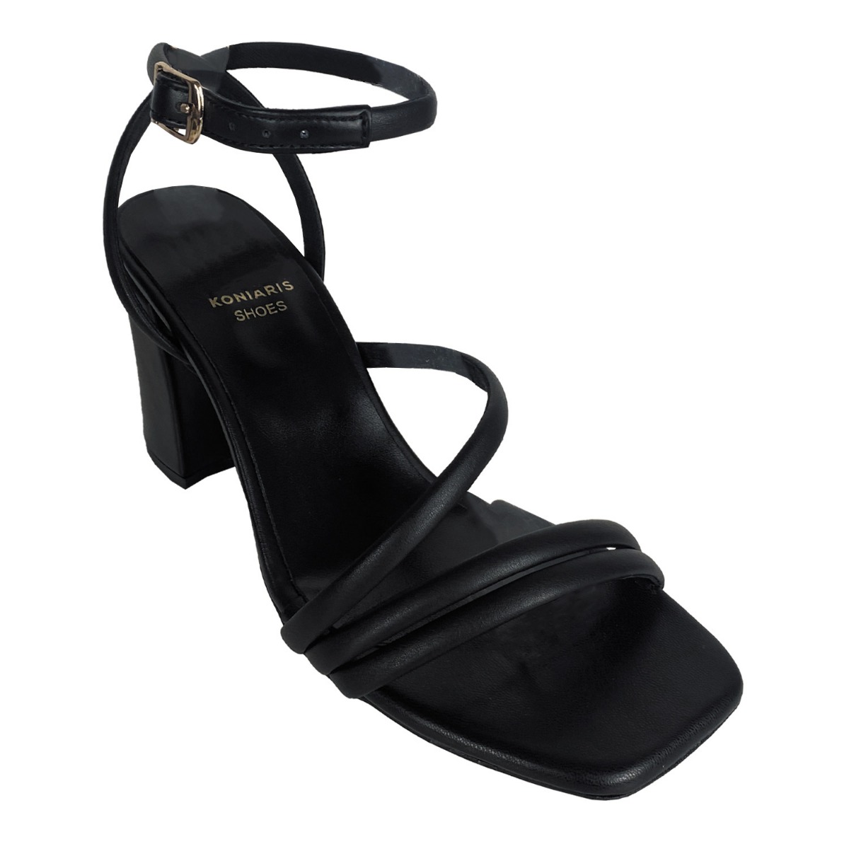 Koniarisshoes γυναικείο πέδιλο σε μαύρο χρώμα κατασκευασμένο από οικολογικό δέρμα. Ύψος τακουνιού 8.5εκ.