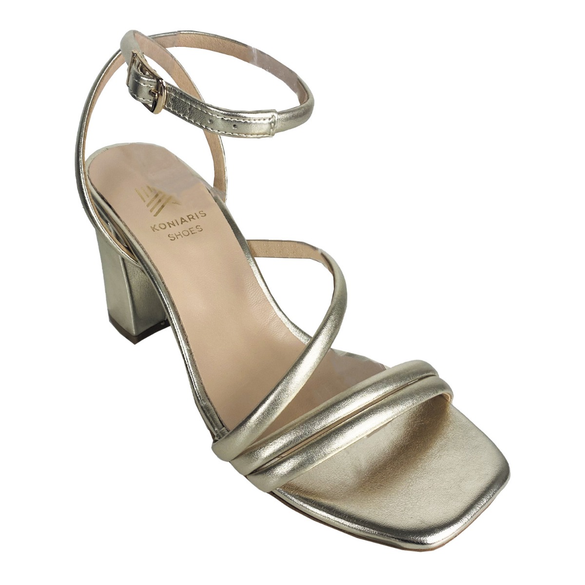 Koniarisshoes γυναικείο πέδιλο σε χρυσό χρώμα κατασκευασμένο από οικολογικό δέρμα. Ύψος τακουνιού 8.5εκ.