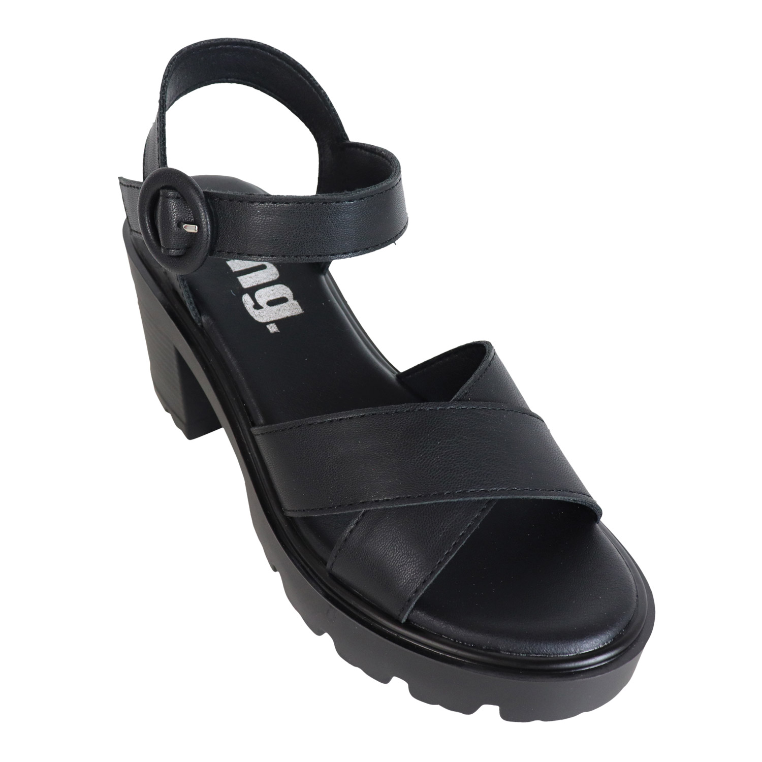 MTNG γυναικείο πέδιλο, σε μαύρο χρώμα, κατασκευασμένο από οικολογικό δέρμα. Ύψος τακουνιού 8εκ.