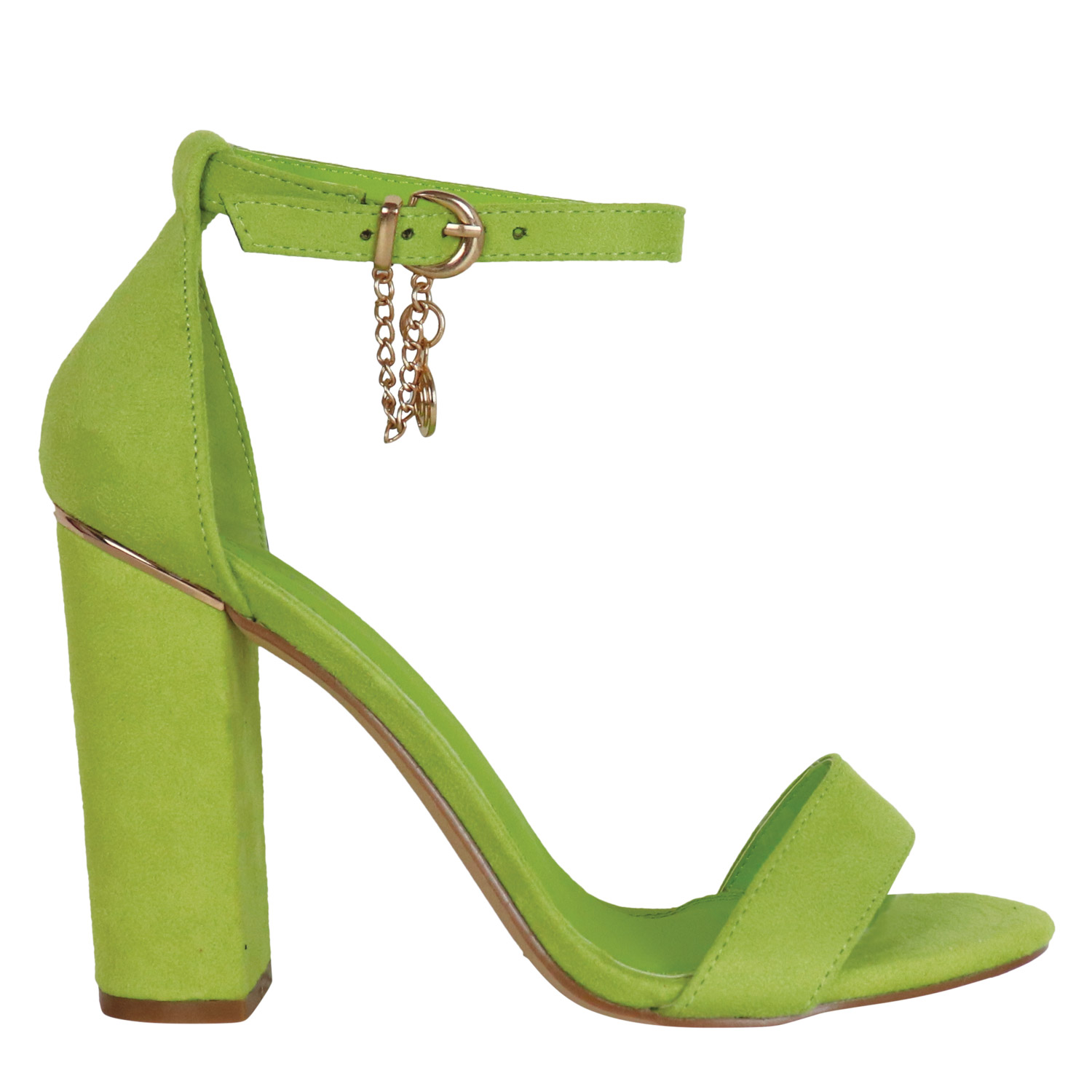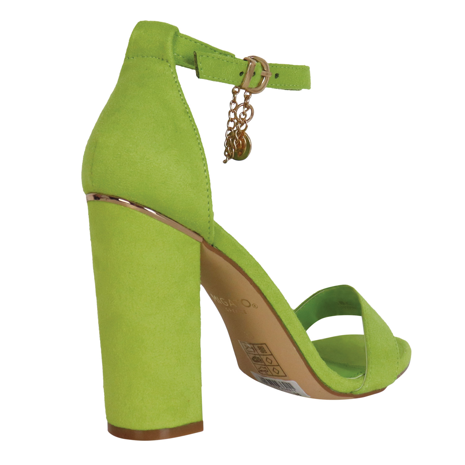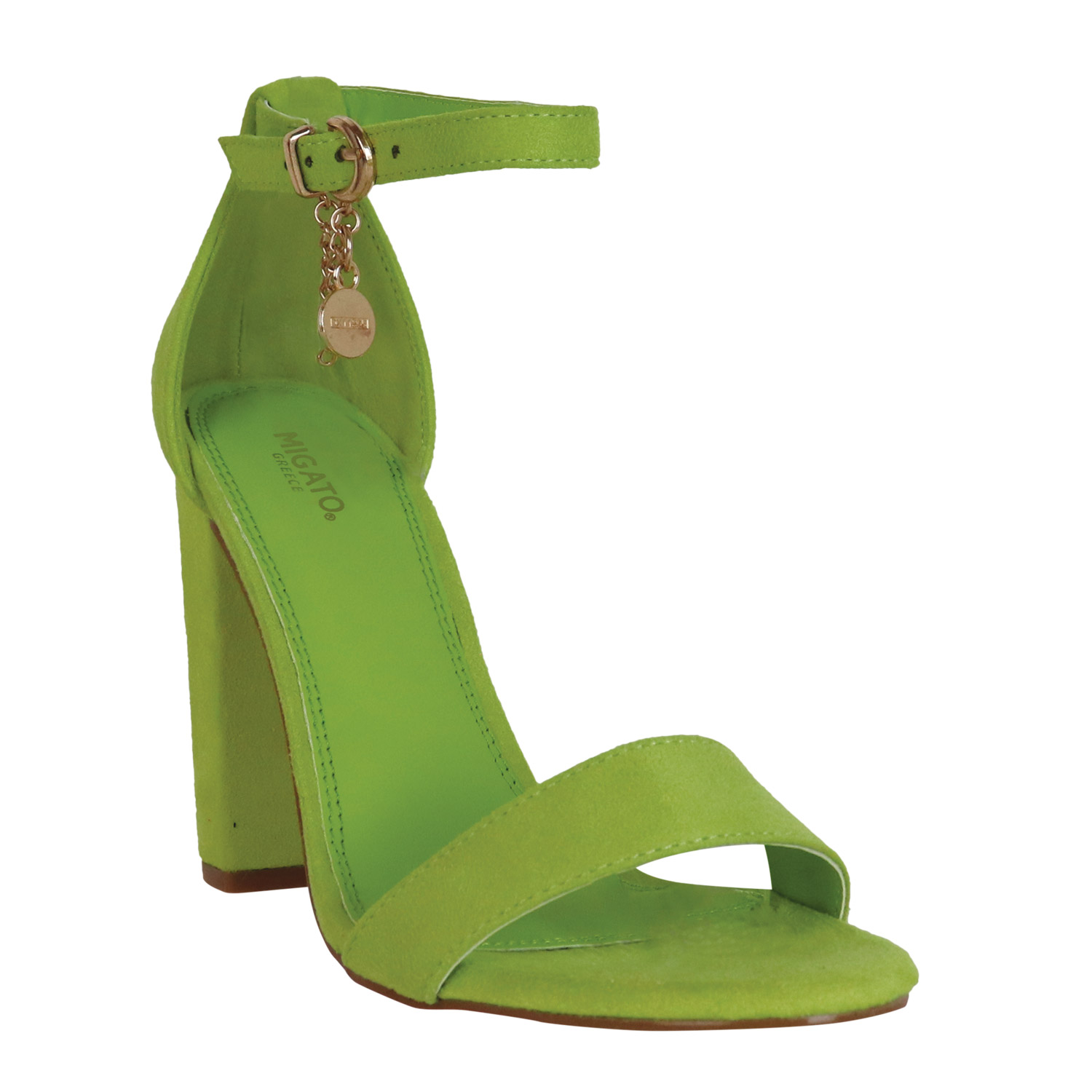 Migato γυναικείο πέδιλο, σε πράσινο χρώμα, κατασκευασμένο από καστόρι. Ύψος τακουνιού 10.5εκ.