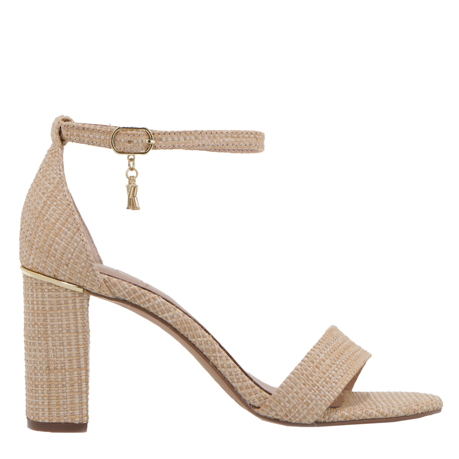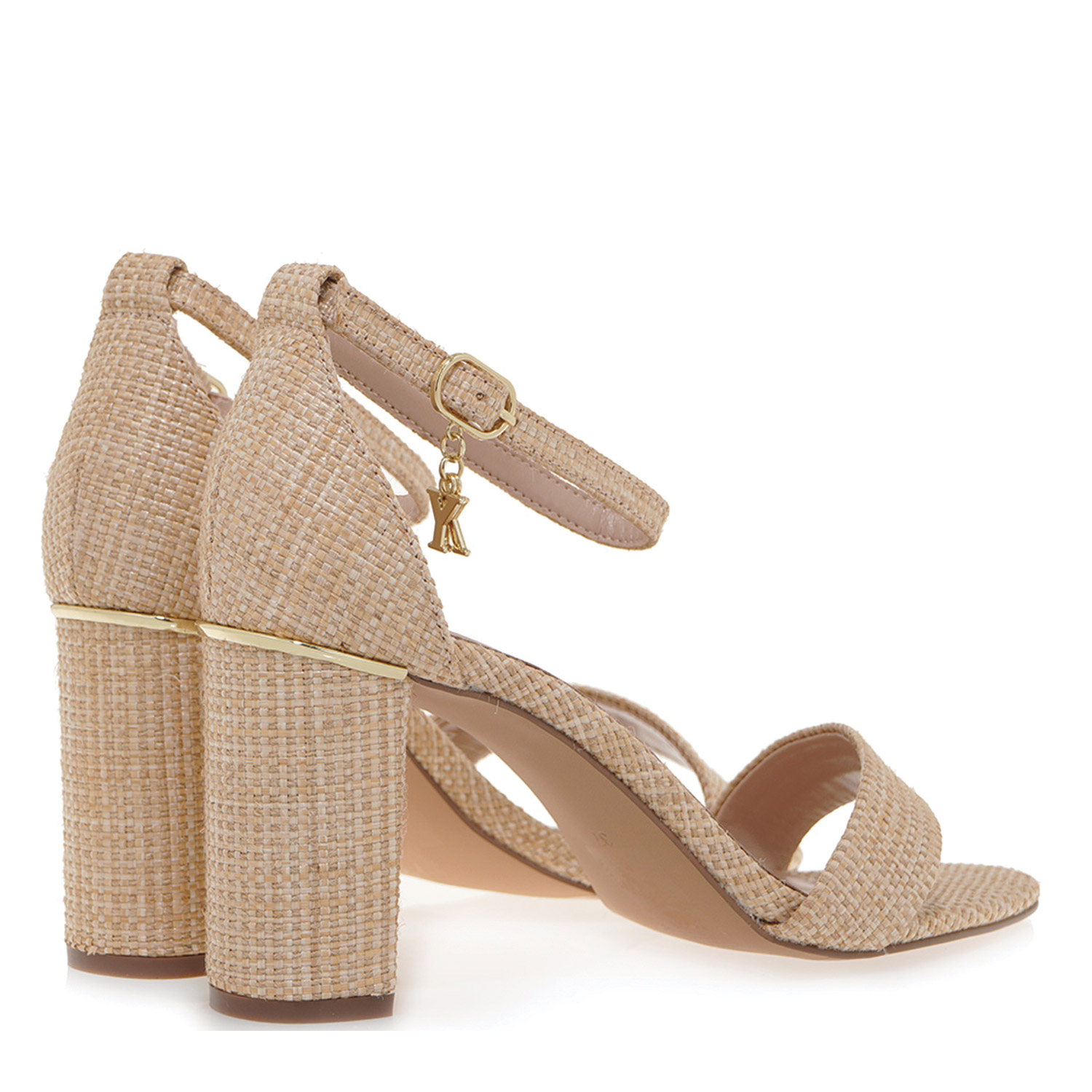 Exe γυναικείο πέδιλο, σε μπεζ χρώμα, κατασκευασμένο από ψάθα. Ύψος τακουνιού 8εκ.