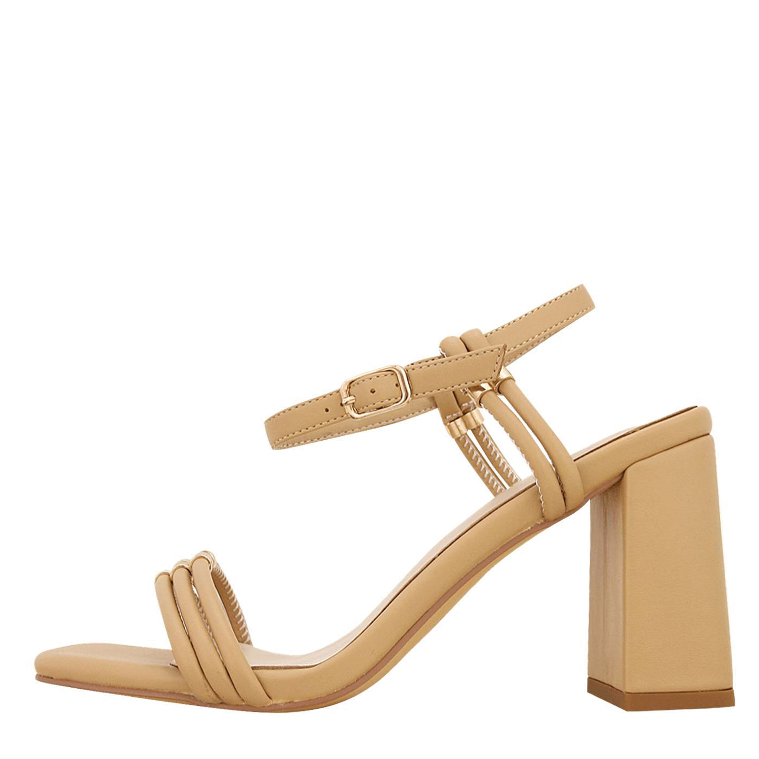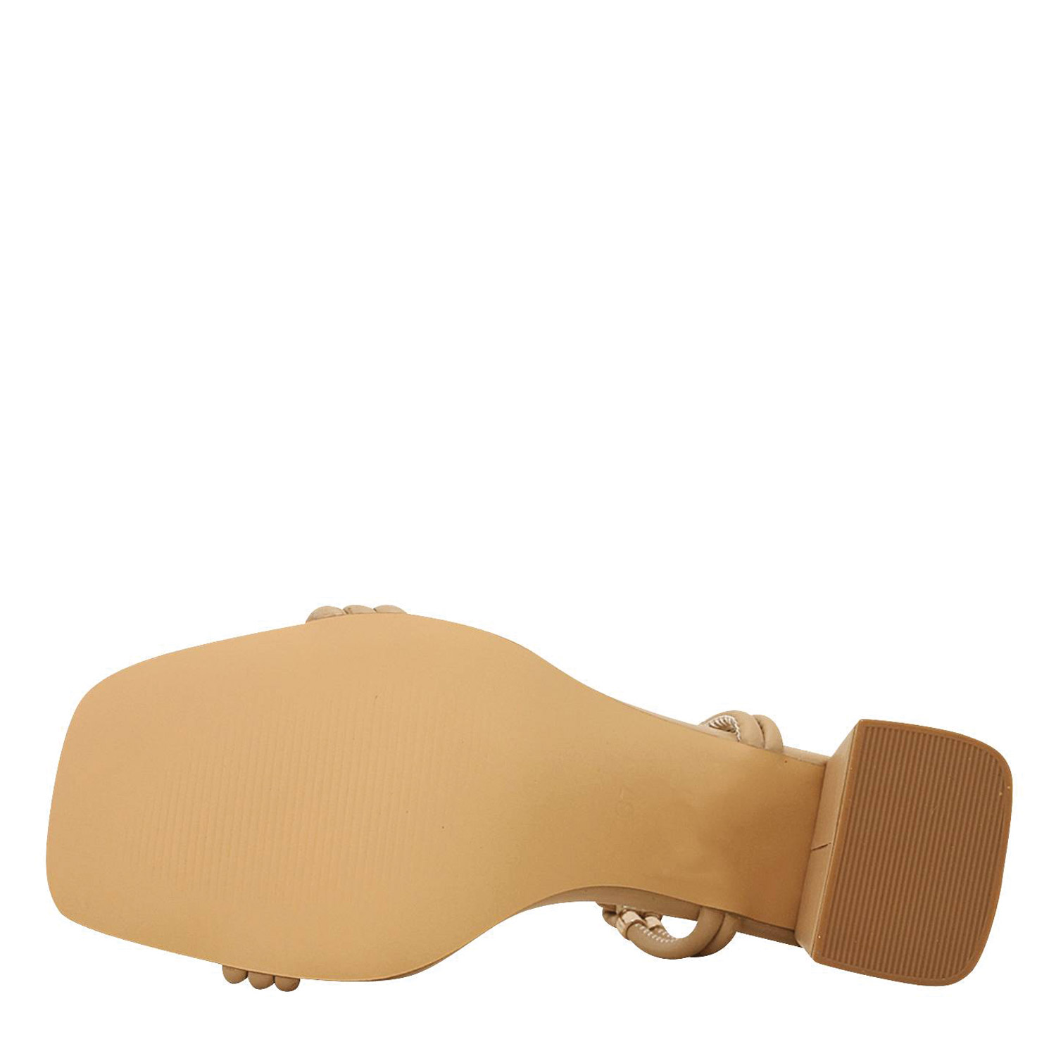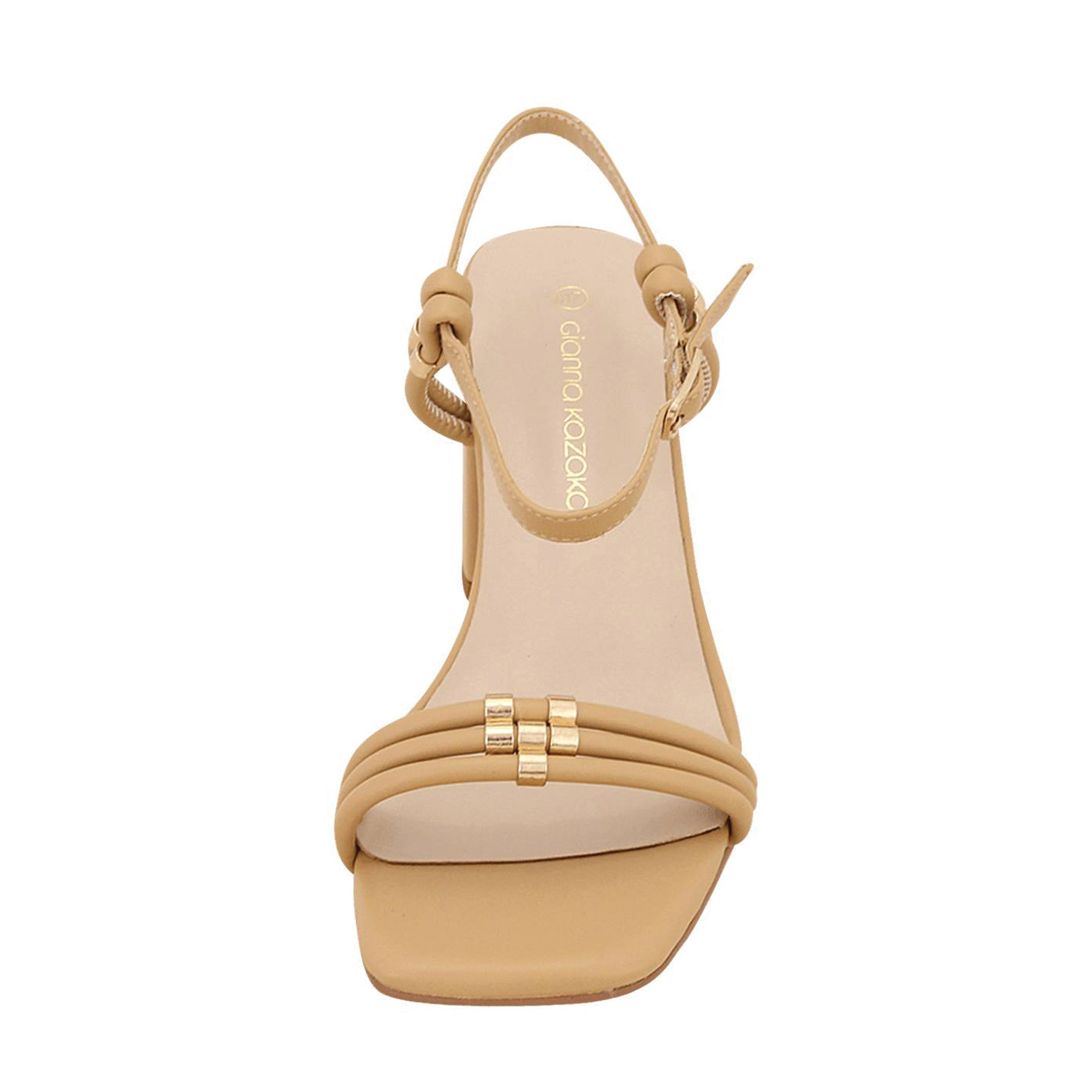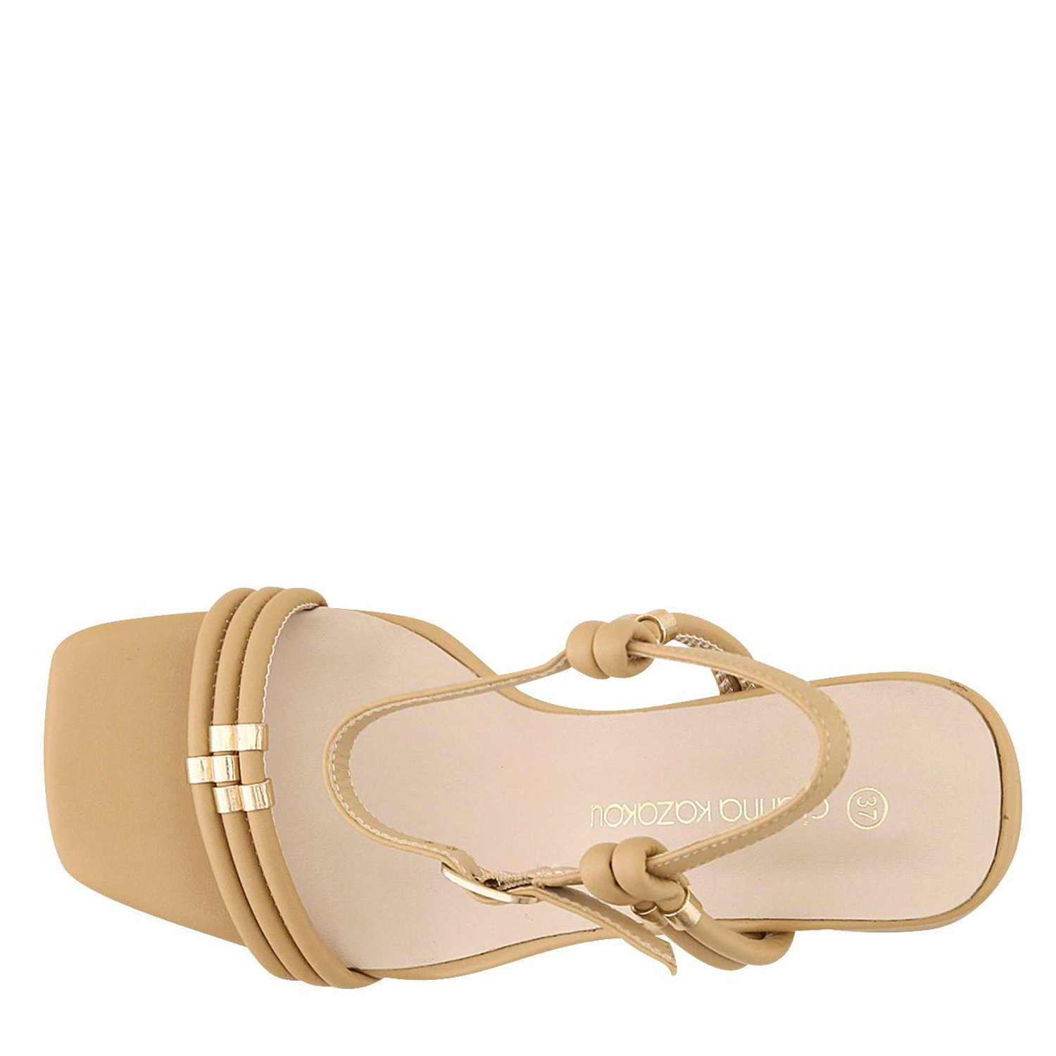 Gianna Kazakou γυναικείο πέδιλο, σε κάμηλο χρώμα, κατασκευασμένο από οικολογικό δέρμα. Ύψος τακουνιού 8.5εκ.