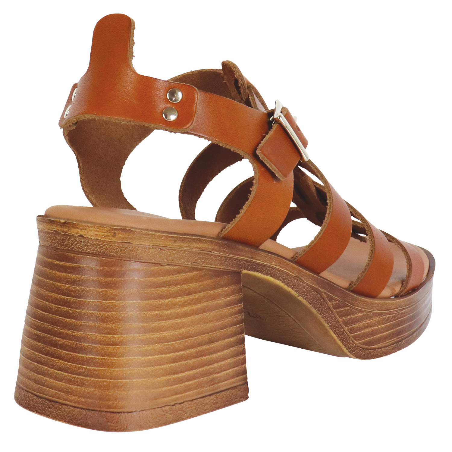 Koniarisshoes γυναικείο πέδιλο, σε ταμπά χρώμα, κατασκευασμένο από δέρμα. Ύψος τακουνιού 7εκ.