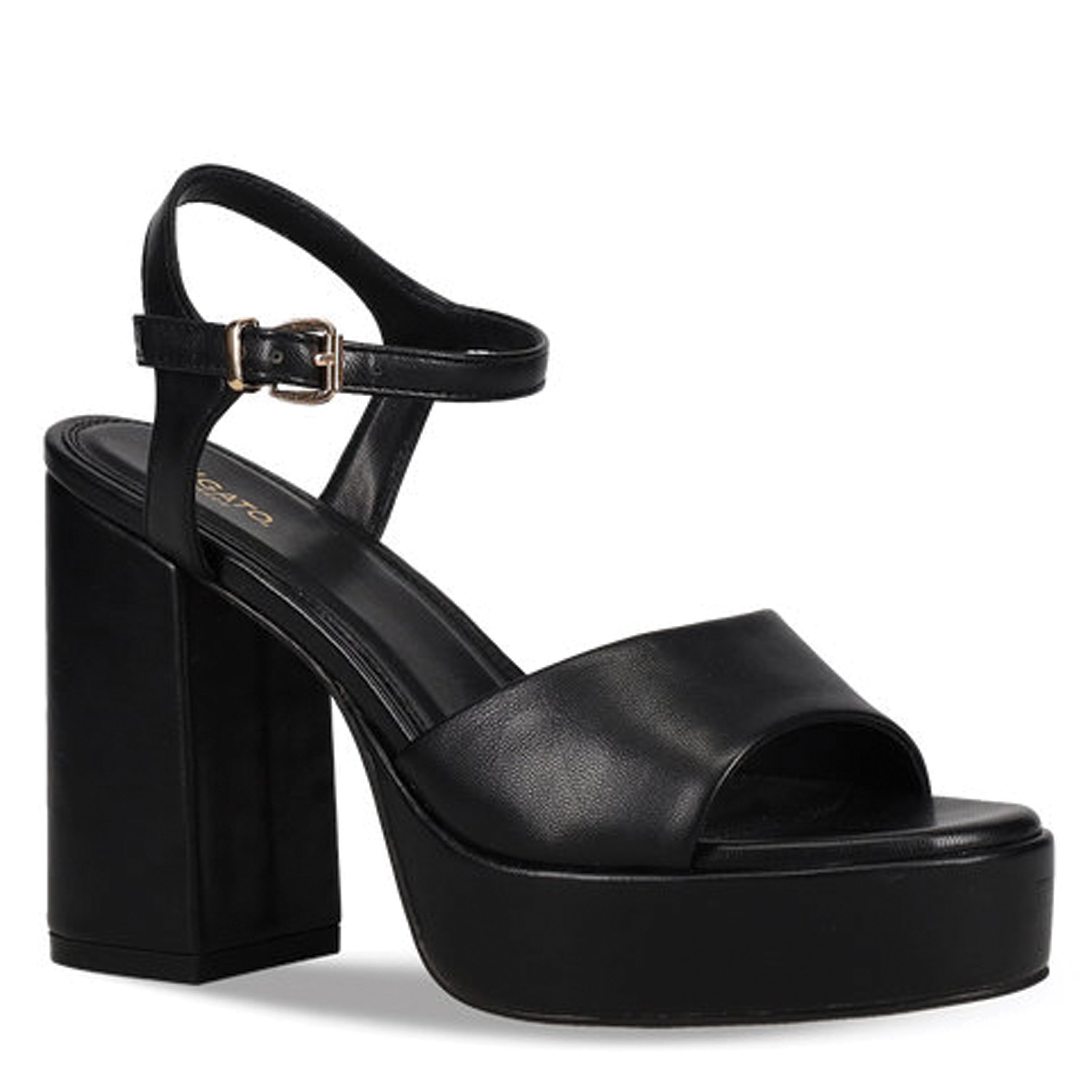 Migato γυναικείο πέδιλο σε μαύρο χρώμα κατασκευασμένο από οικολογικό δέρμα. Ύψος τακουνιού 11.5εκ.