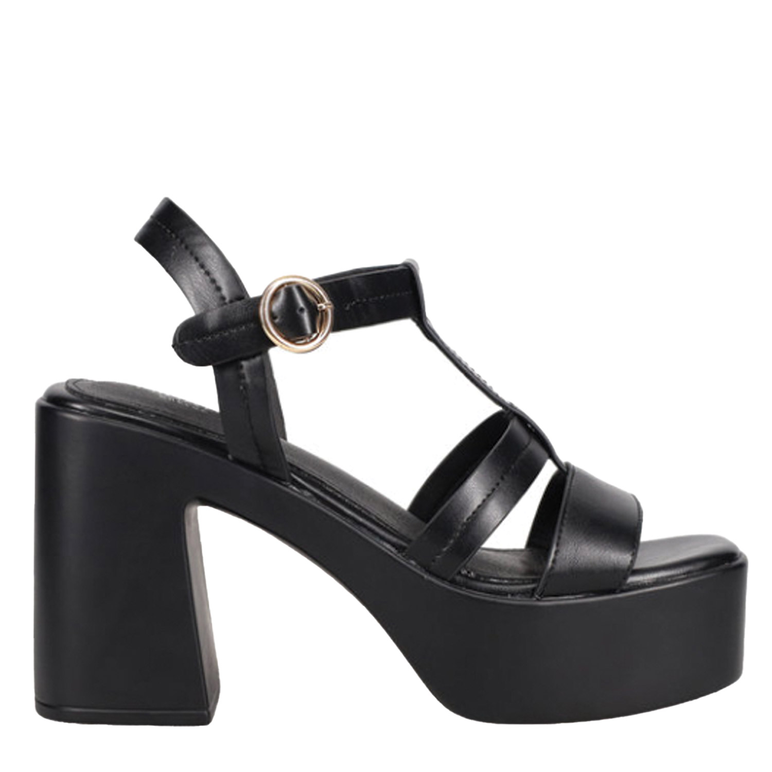 Migato γυναικείο πέδιλο, σε μαύρο χρώμα, κατασκευασμένο από οικολογικό δέρμα. Ύψος τακουνιού 10εκ. Ύψος φιάπας 3.5εκ