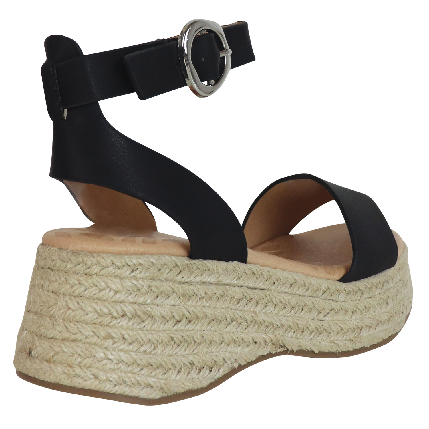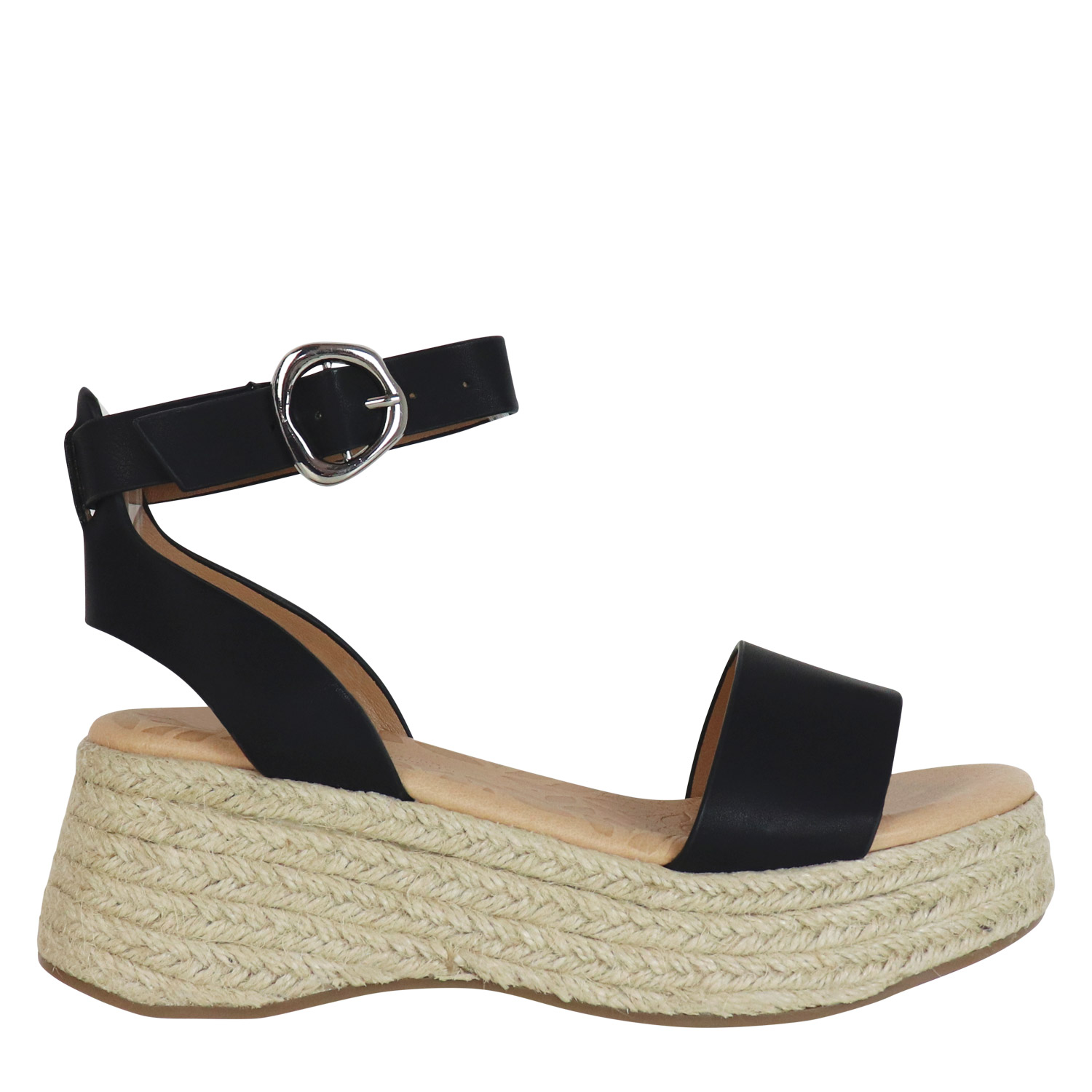Mtng γυναικεία εσπαντρίγια, σε μαύρο χρώμα, κατασκευασμένη από οικολογικό δέρμα. Ύψος σόλας 6εκ.