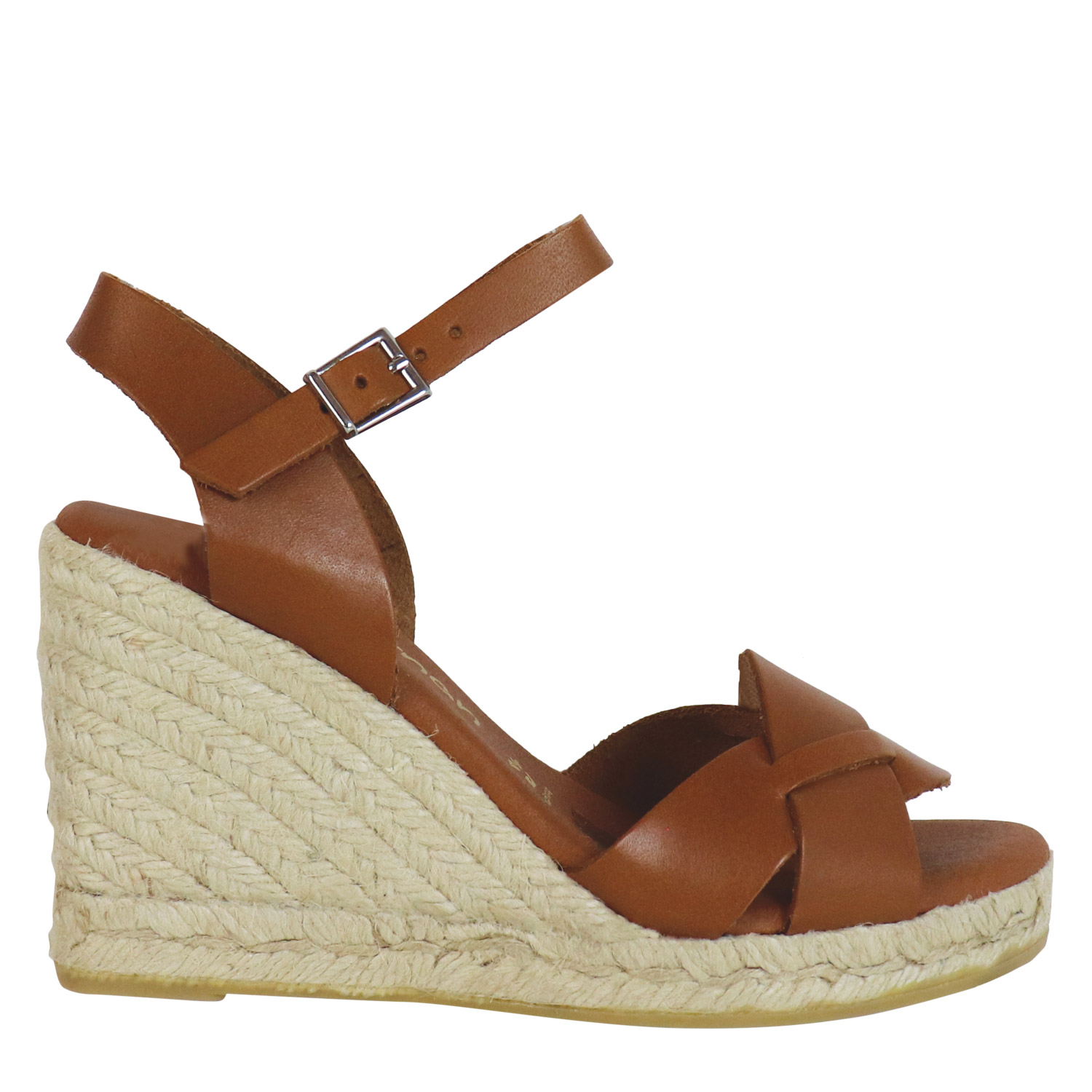 Koniarisshoes γυναικεία εσπαντρίγια, σε ταμπά χρώμα, κατασκευασμένη από δέρμα, με δερμάτινο πατάκι. Ύψος σόλας 10εκ.