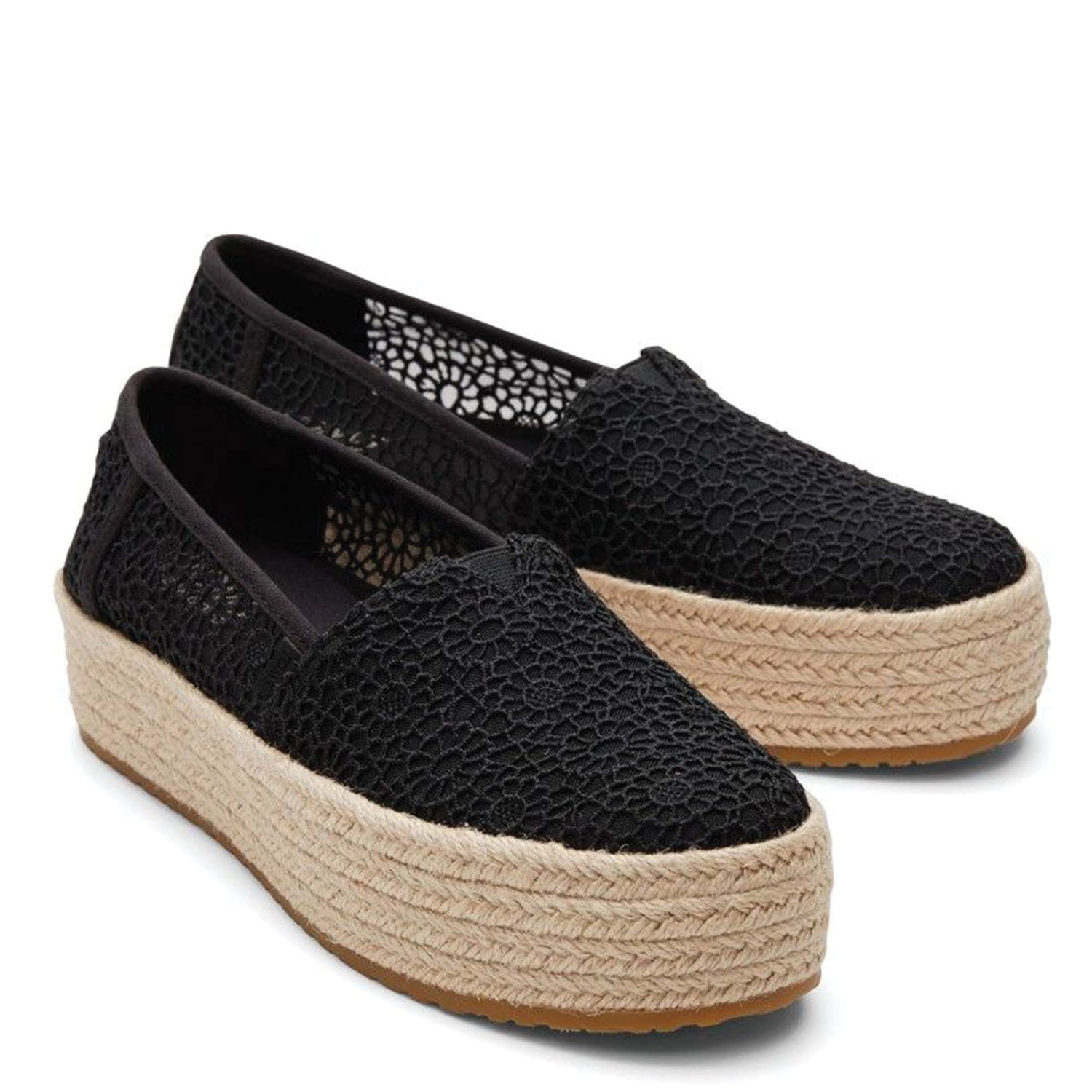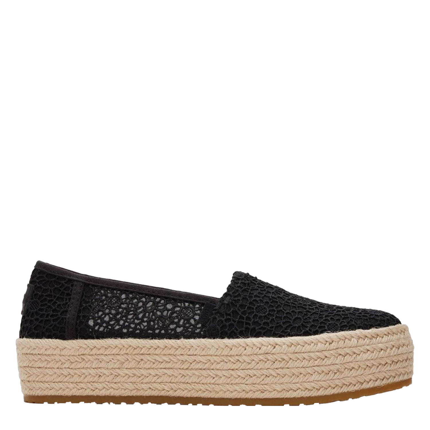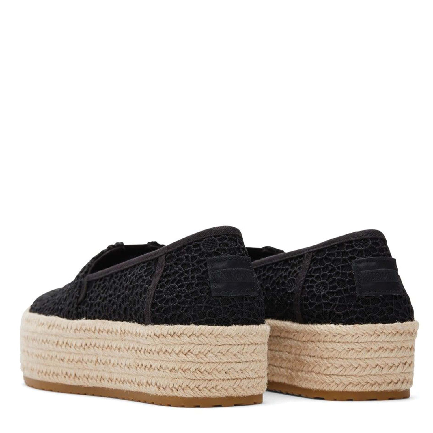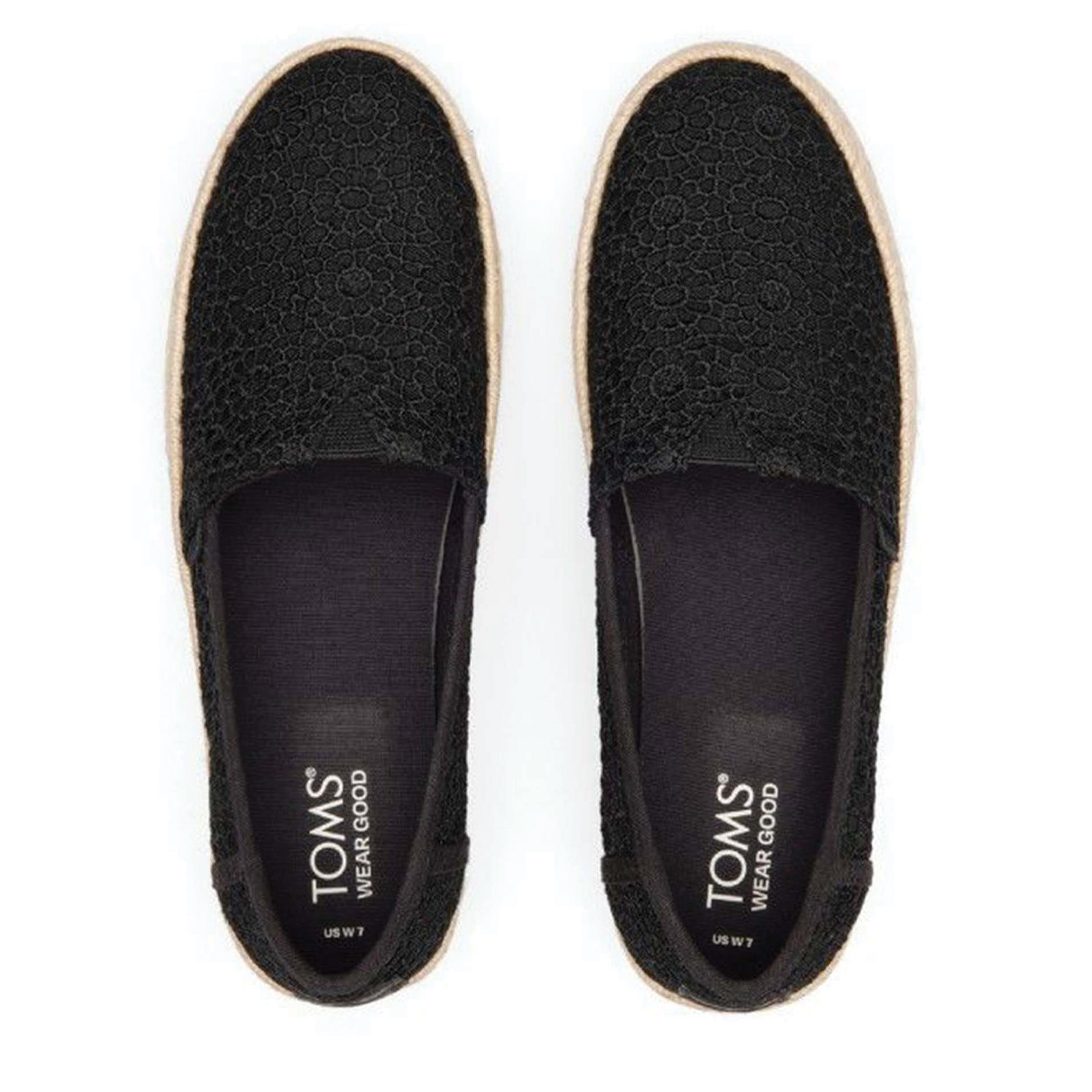 Toms γυναικεία εσπαντρίγια, σε μαύρο χρώμα, κατασκευασμένη από δαντέλα. Ύψος σόλας 4εκ.