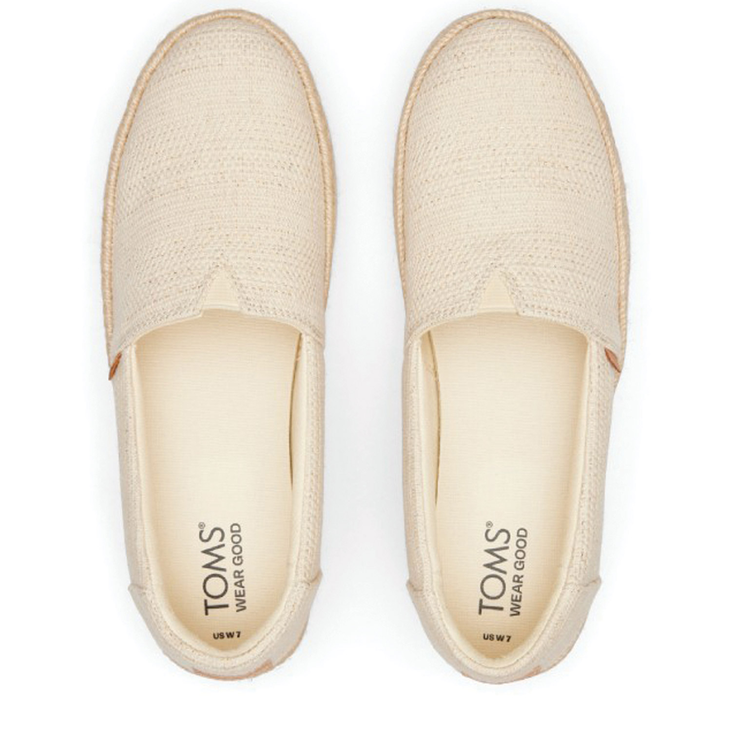 Toms γυναικεία εσπαντρίγια σε μπεζ χρώμα κατασκευασμένη από ύφασμα. Ύψος σόλας 4εκ.