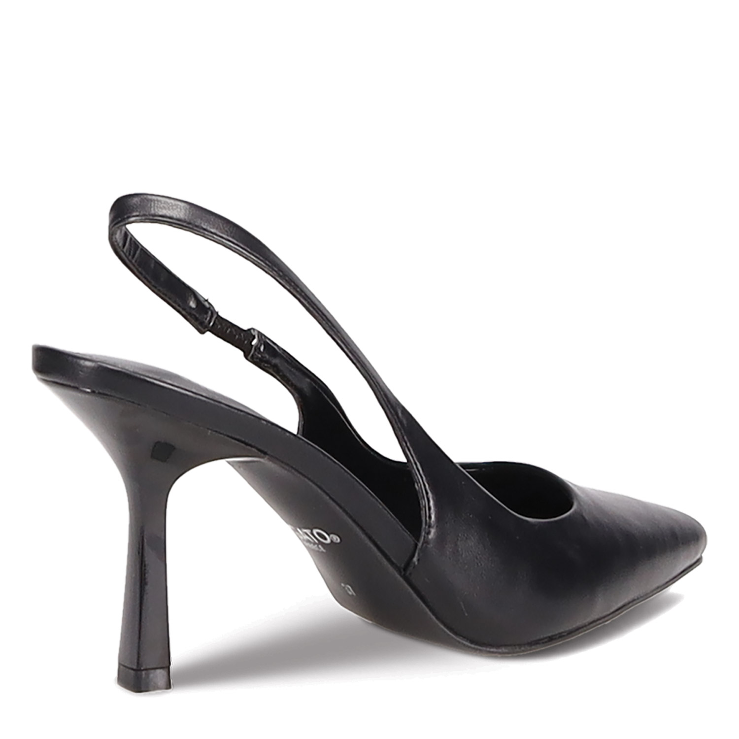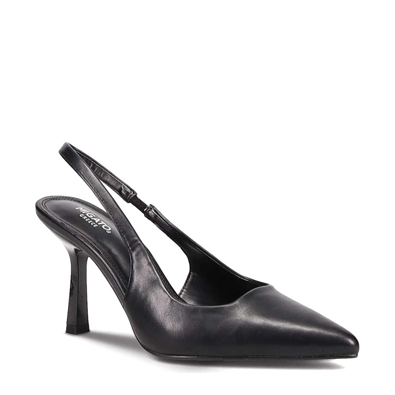 Migato γυναικεία γόβα σε μαύρο χρώμα κατασκευασμένη από οικολογικό δέρμα, με ανατομικό πατάκι. Ύψος τακουνιού 8εκ.