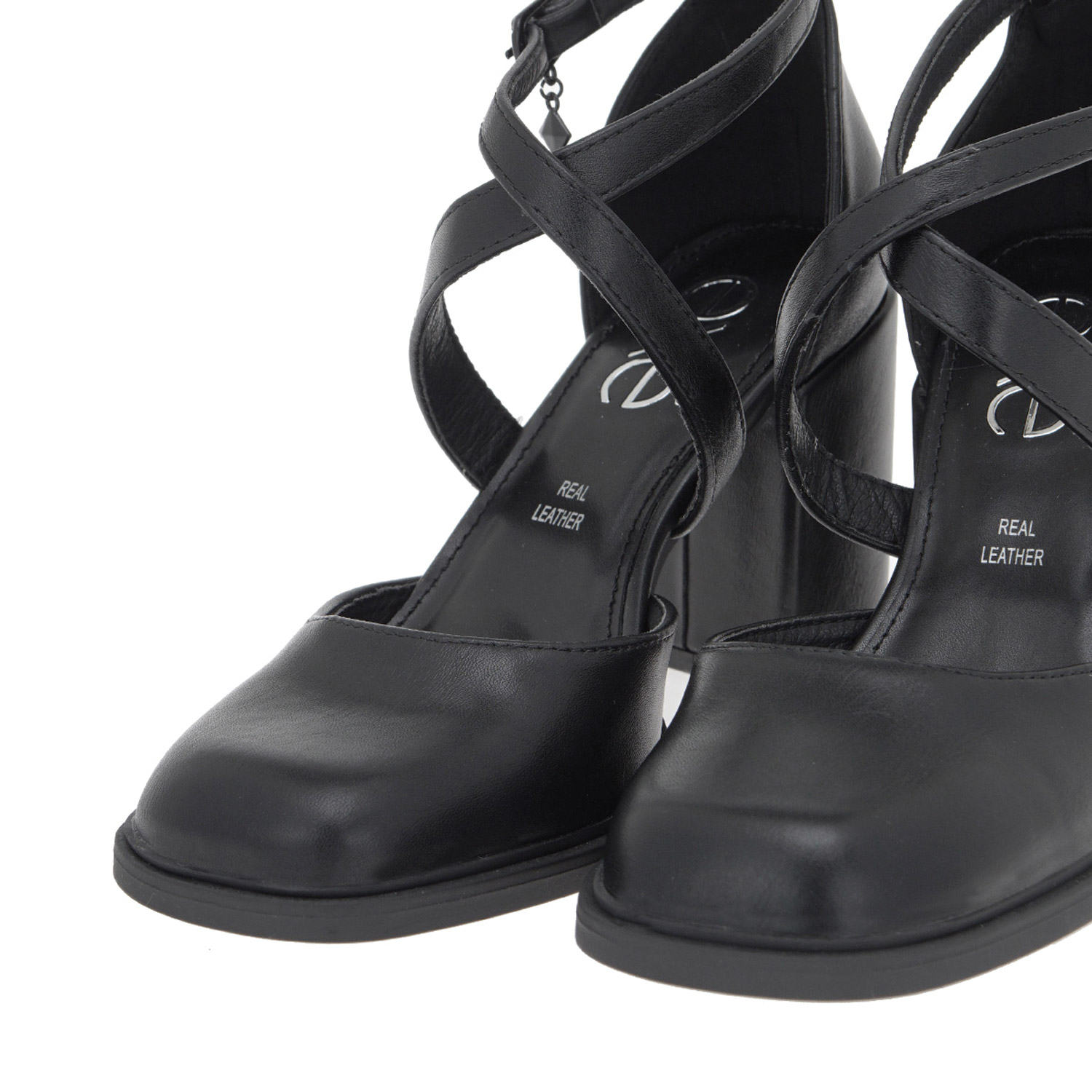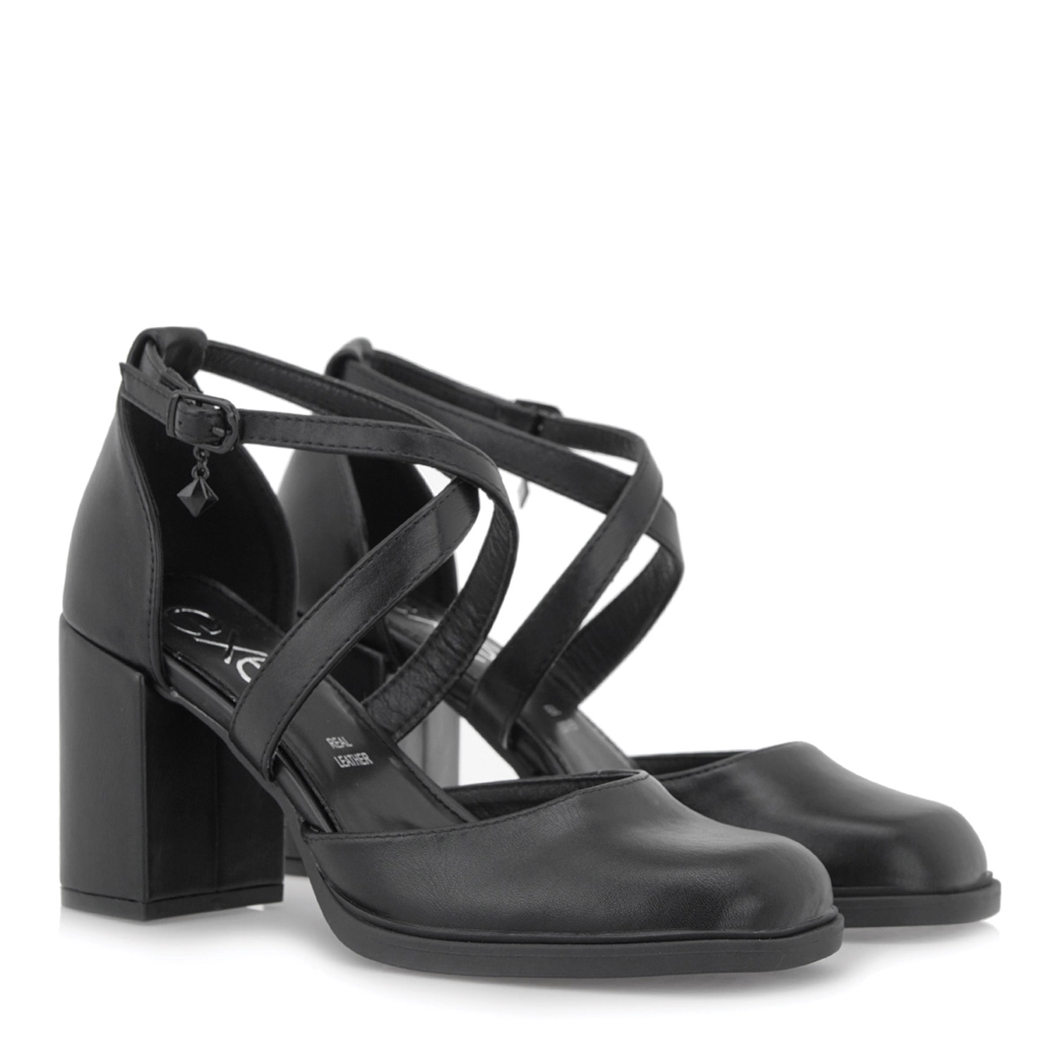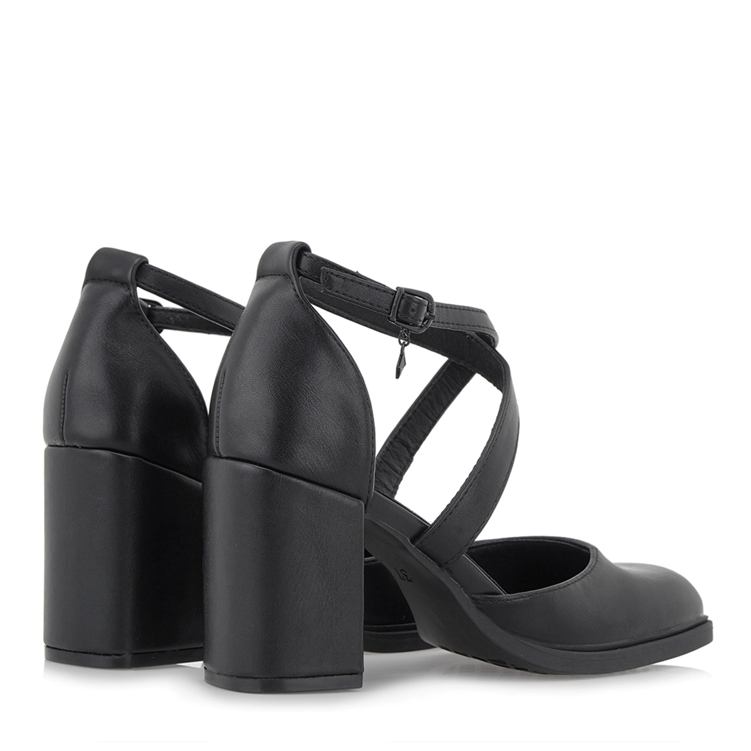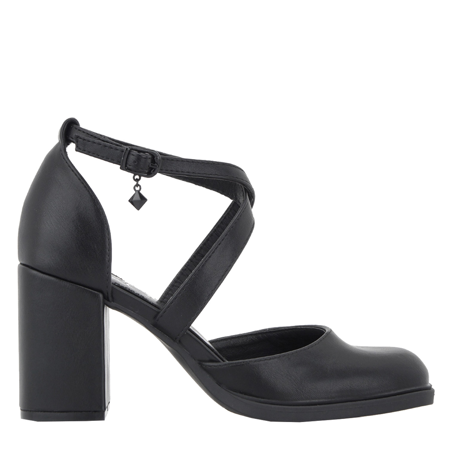 Exe γυναικεία γόβα, σε μαύρο χρώμα, κατασκευασμένη από οικολογικό δέρμα. Ύψος σόλας 8.5εκ.