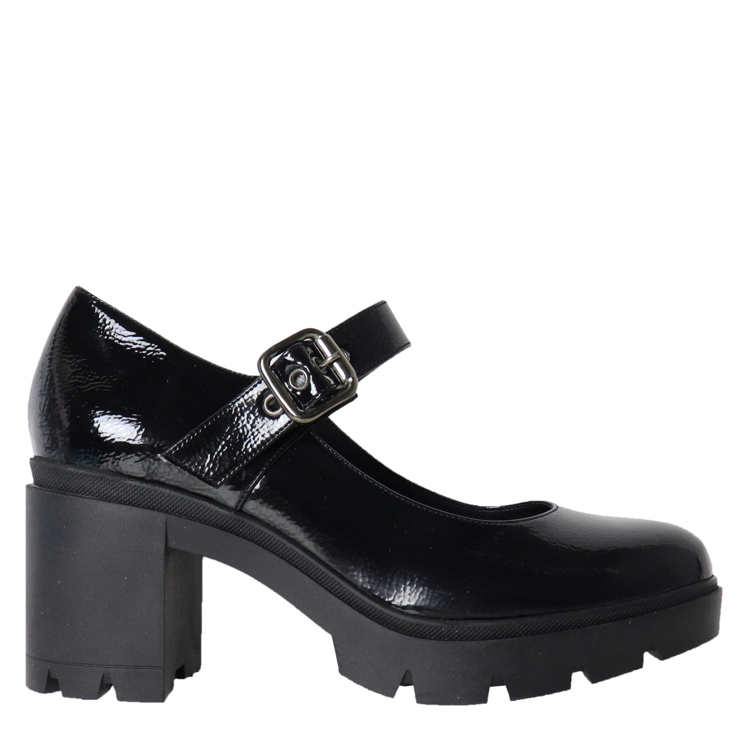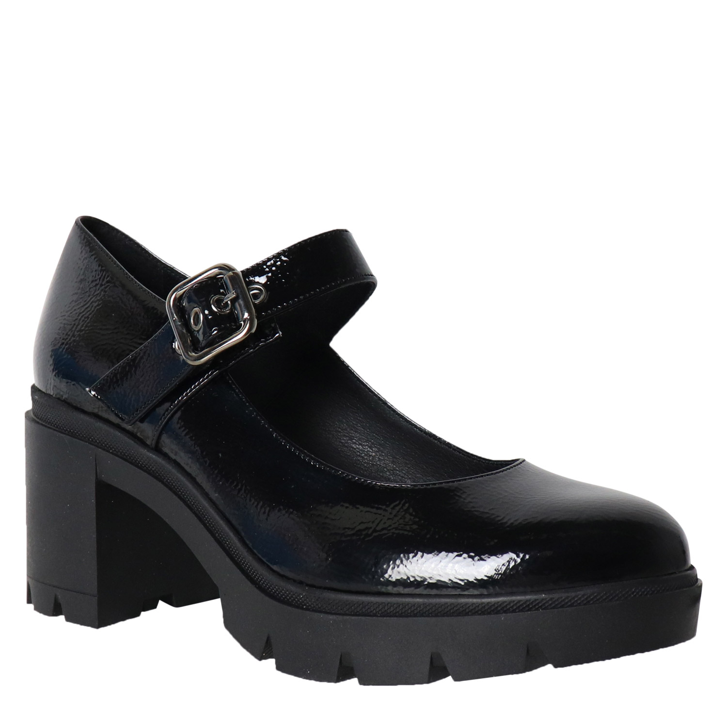 Koniarisshoes γυναικεία γόβα, σε μαύρο χρώμα, κατασκευασμένη από λουστρίνι. Ύψος τακουνιού 7.5εκ.