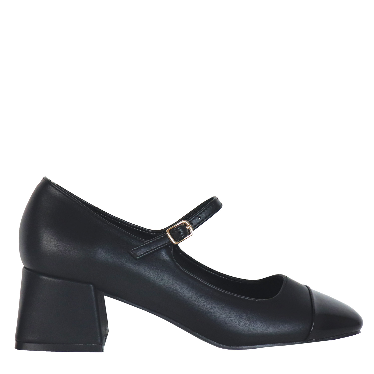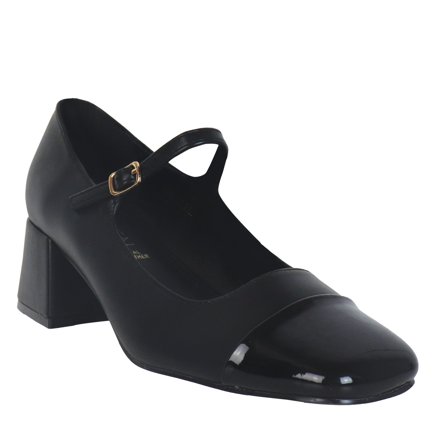 Seven γυναικεία γόβα, σε μαύρο χρώμα, κατασκευασμένη από λουστρίνι. Ύψος τακουνιού 5.5εκ.