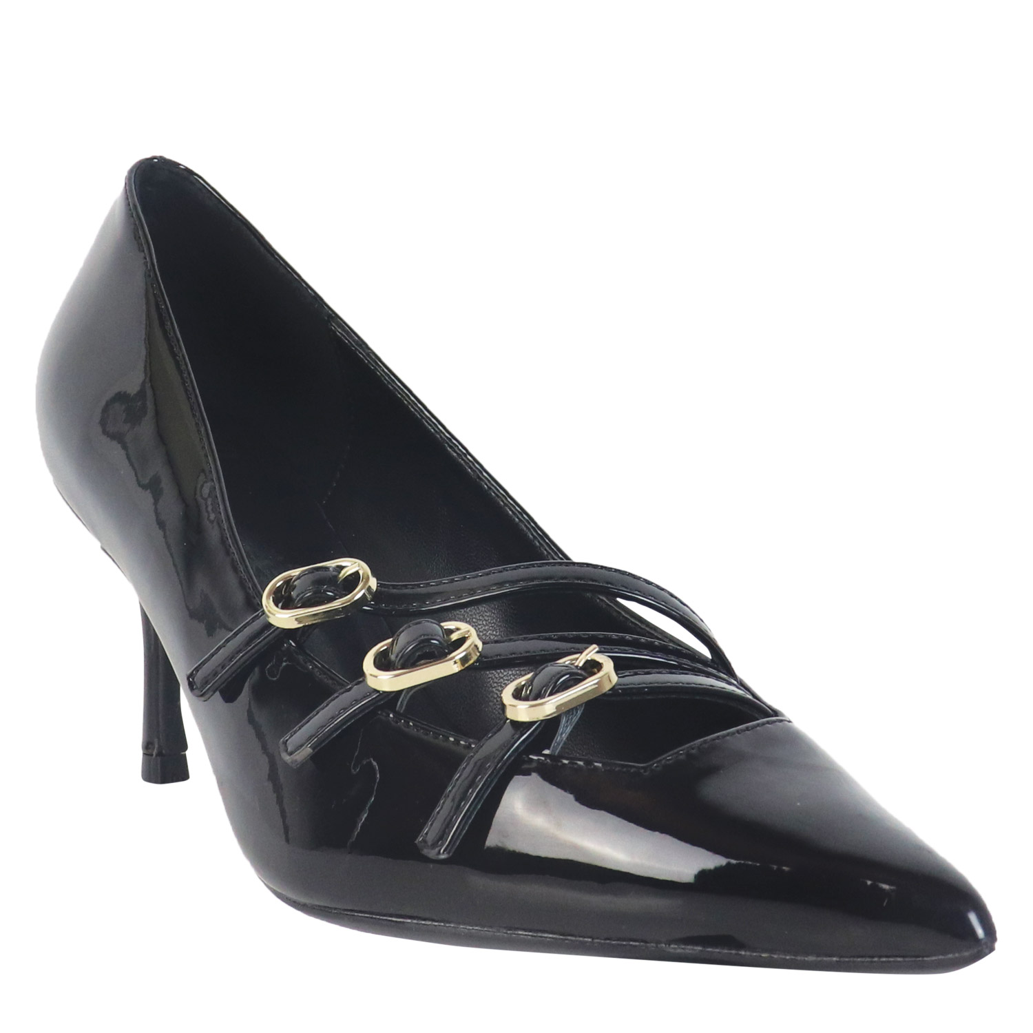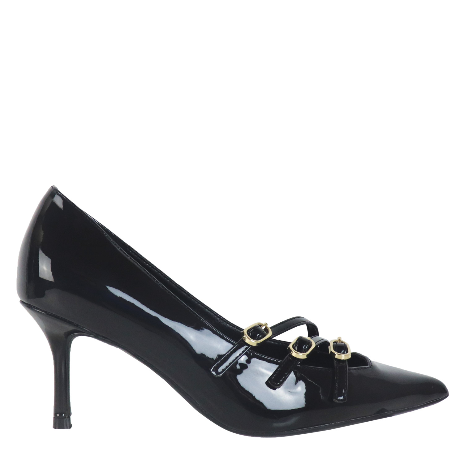 Exe γυναικεία γόβα, σε μαύρο χρώμα, κατασκευασμένη από λουστρίνι. Ύψος τακουνιού 7,5εκ.
