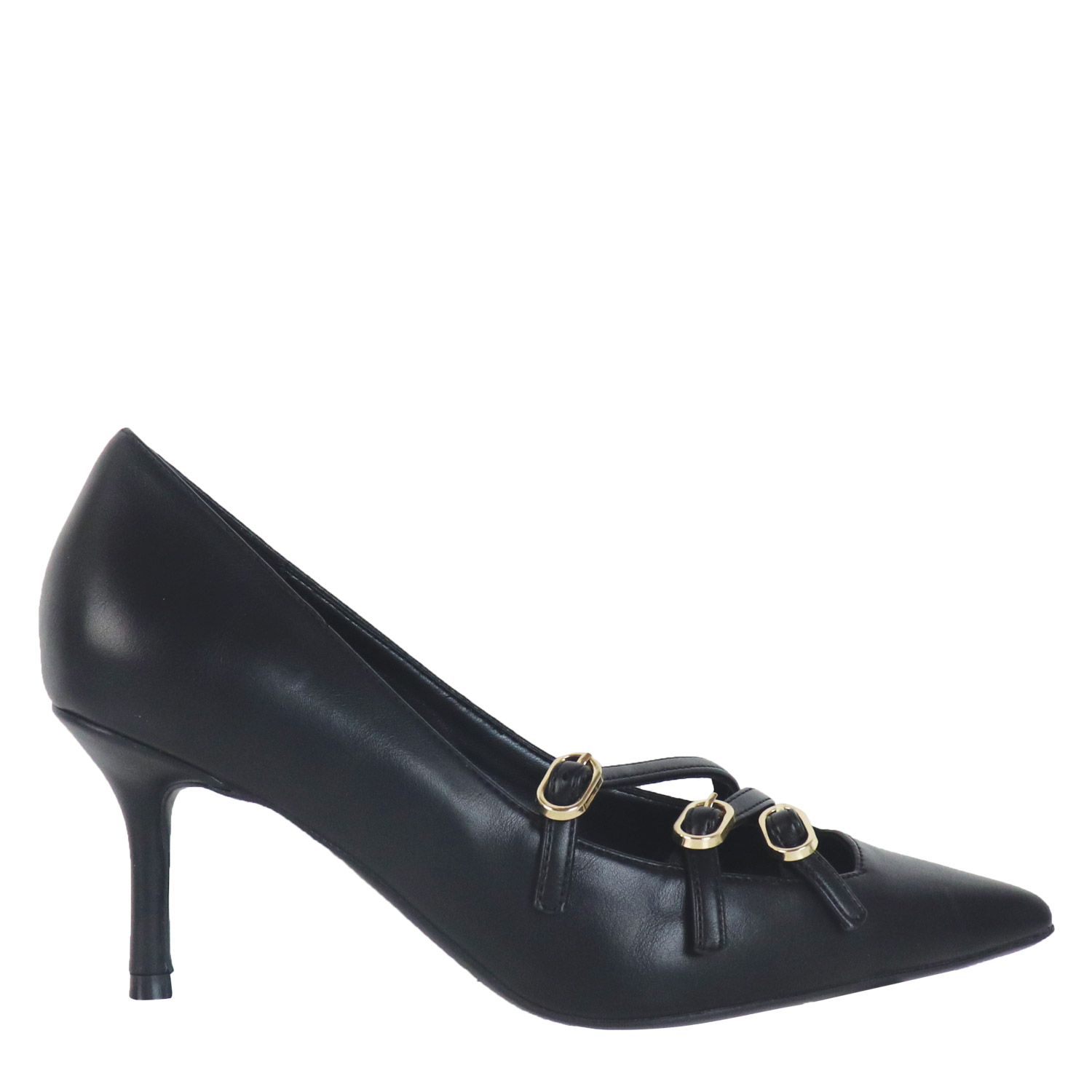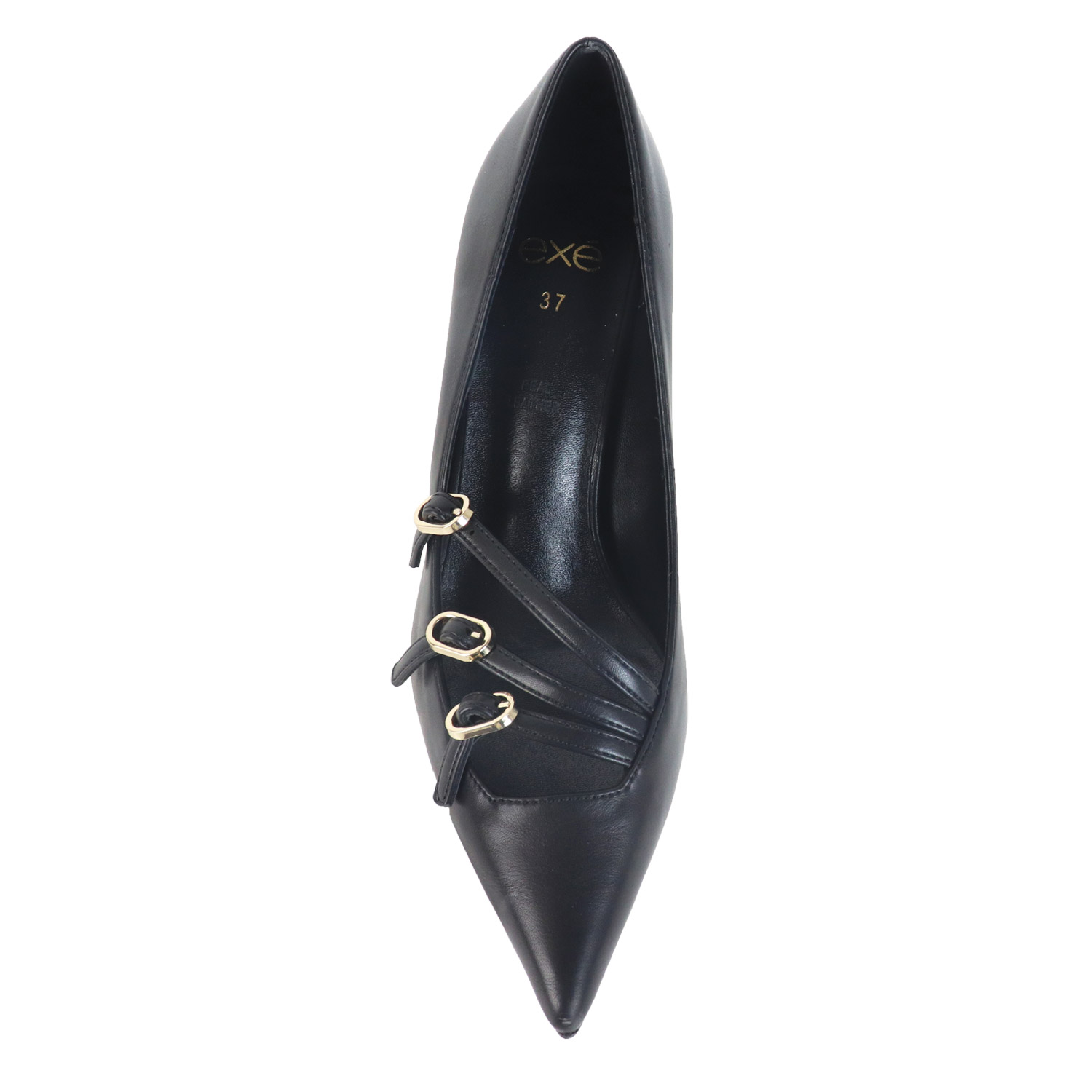 Exe γυναικεία γόβα, σε μαύρο χρώμα, κατασκευασμένη από οικολογικό δέρμα. Ύψος σόλας 7.5εκ.