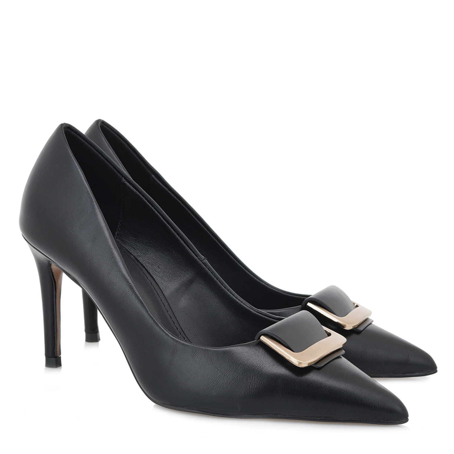 Exe γυναικεία γόβα, σε μαύρο χρώμα, κατασκευασμένη από οικολογικό δέρμα. Ύψος τακουνιού 8.5εκ.