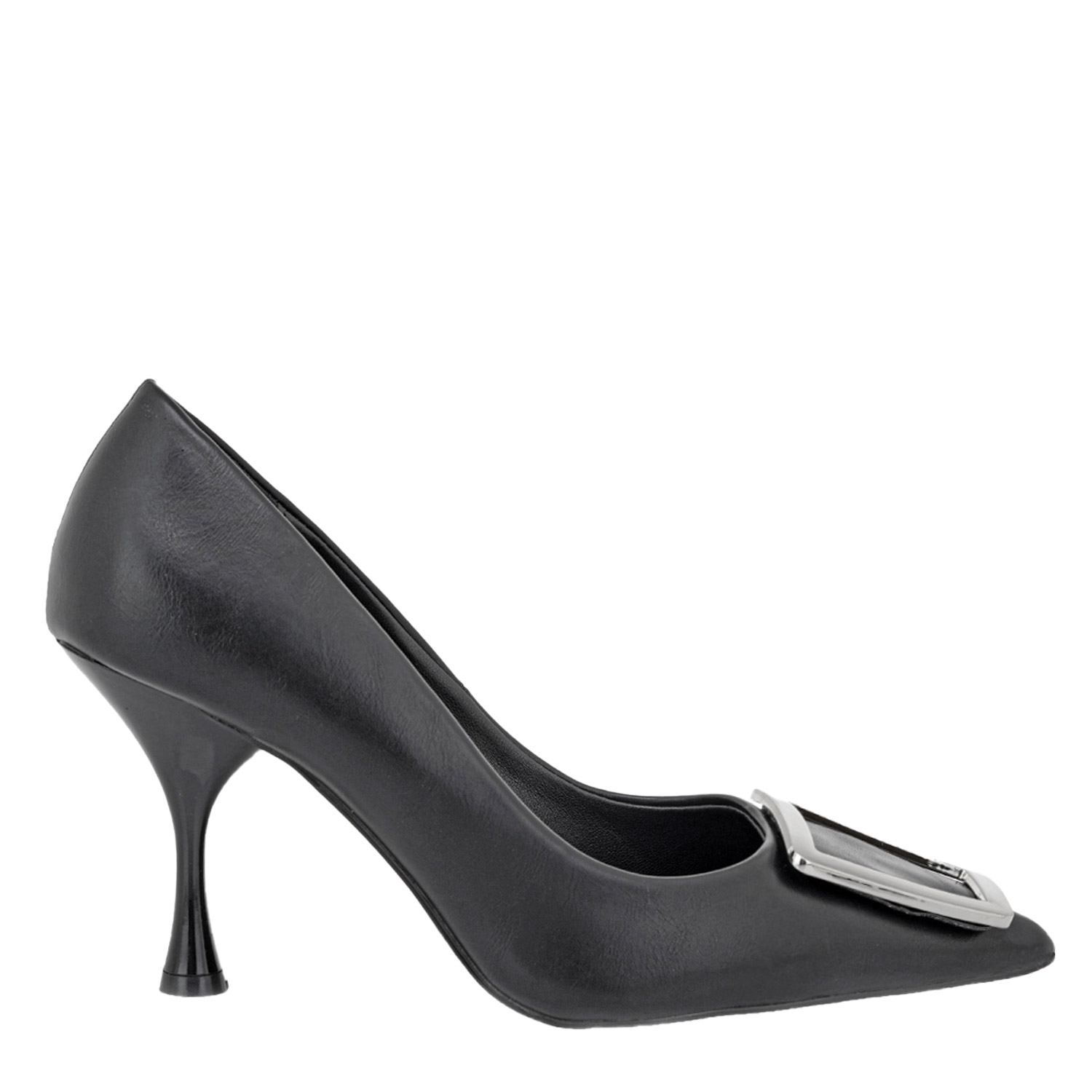 Exe γυναικεία γόβα, σε μαύρο χρώμα, κατασκευασμένη από οικολογικό δέρμα. Ύψος τακουνιού 8,5εκ.