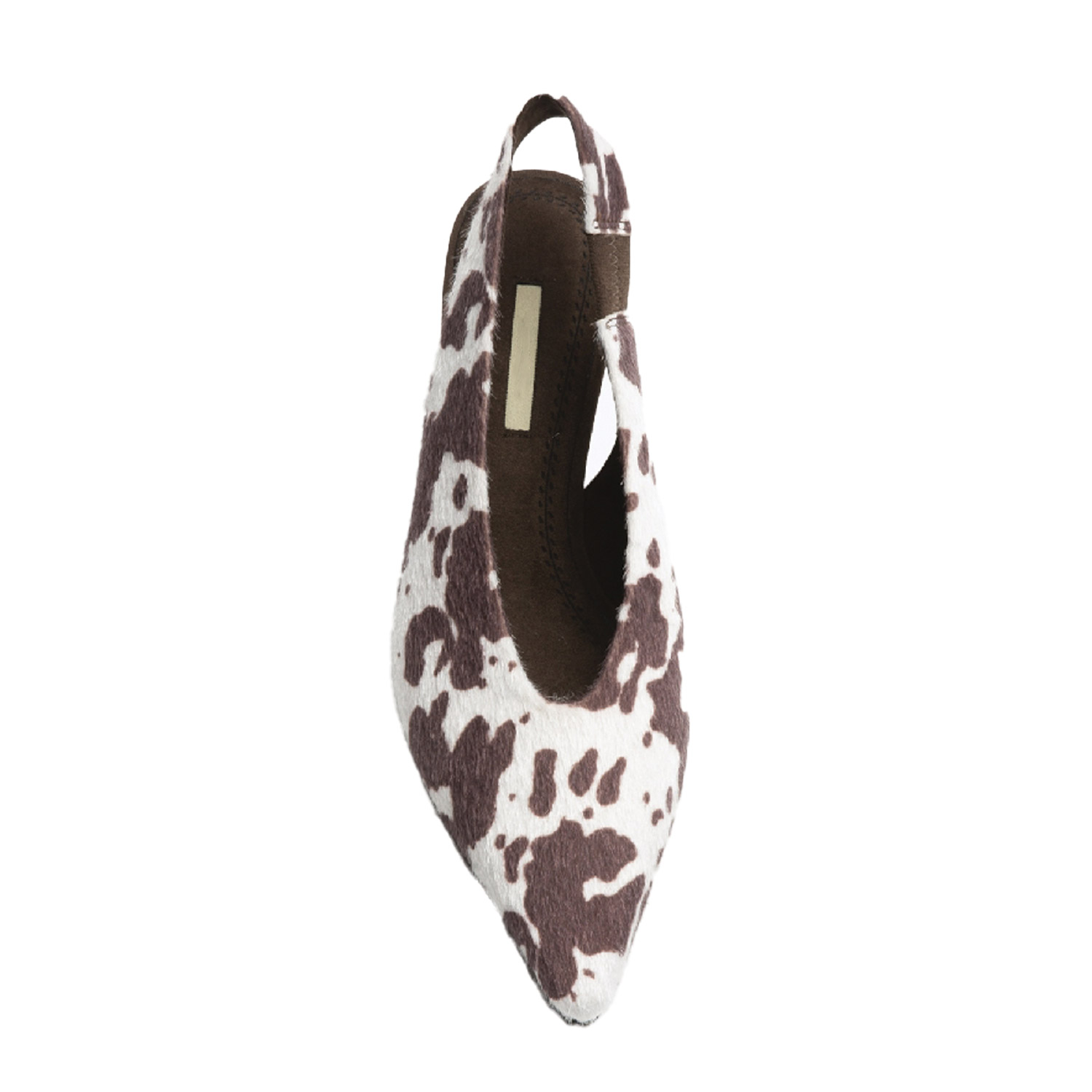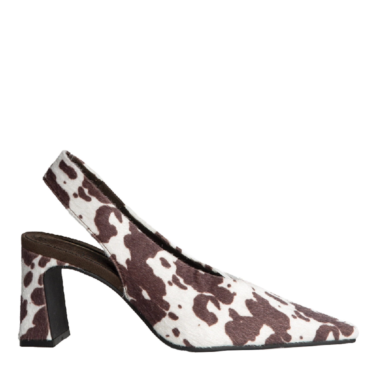 Koniarisshoes γυναικεία γόβα, σε καφέ χρώμα, κατασκευασμένη από ύφασμα. Ύψος τακουνιού 7εκ.
