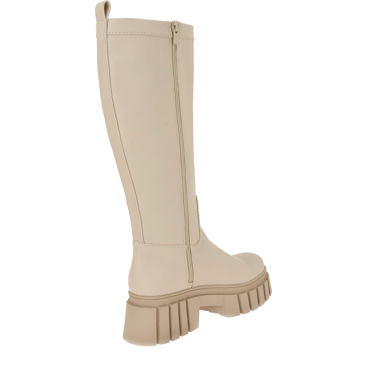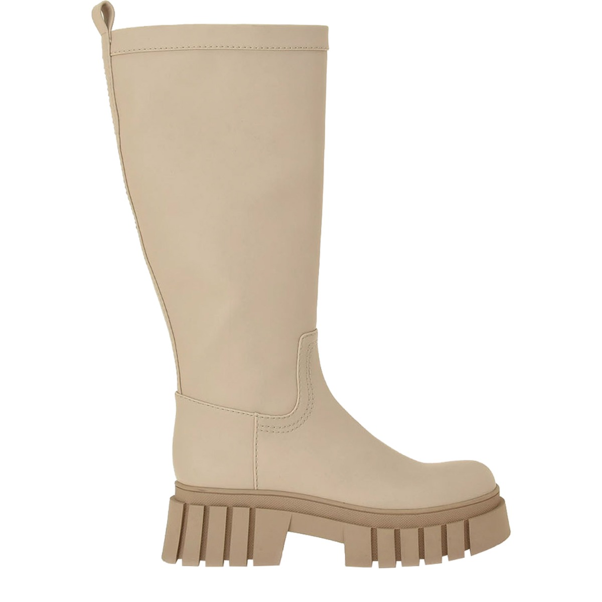 Exe γυναικεία μπότα σε μπεζ χρώμα κατασκευασμένη από οικολογικό δέρμα, με ανατομικό πατάκι. Ύψος σόλας 5.5εκ.